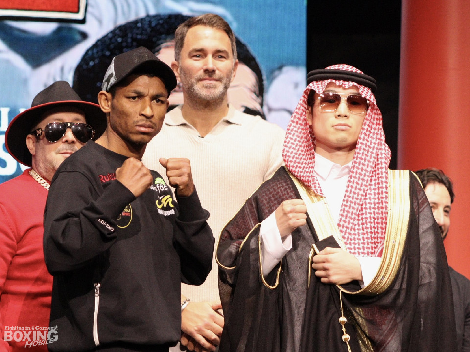 IBF(国際ボクシング連盟)スーパーフライ級タイトルマッチの記者会見が25日、サウジアラビア・リヤドの「Global Theatre Boulevard City Riyadh」で行われ、王者ウィリバリド・ガルシア・ペレス(35=メキシコ)と同級6位の寺地拳四朗(33=BMB)が、決戦に向けた覚悟を示した。
