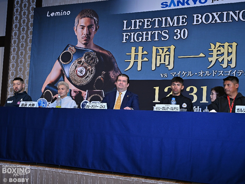 シルバーに染めたヘアスタイルで登壇した吉良は、「目を合わせた時にいい人だなと思った。結構好戦的で、ザ・メキシカンというイメージ」と、激闘型のイバンとの対決を心待ちにした。今回は階級を一つ下げて戦うことには、「ライトフライ級では初めてだけど、練習に支障が出ないで体重が落ちた。特に変わったことはしていないが、ボクシングの質を上げるためにコツコツ基礎や課題に取り組んだ」と、トレーニングを振り返った。