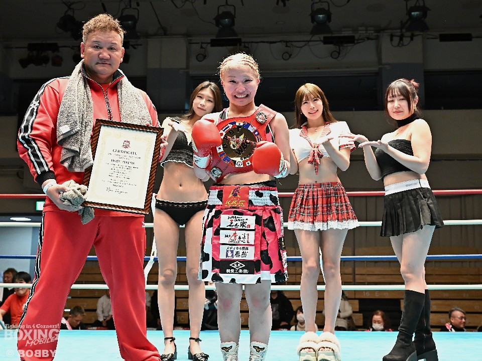 狩野ほのか(31=TEAM10COUNT)もアトム級王座を2度防衛中だが、前回の樋口藍(23=一力)とはドロー防衛だったため、今年の飛躍を期待したい。