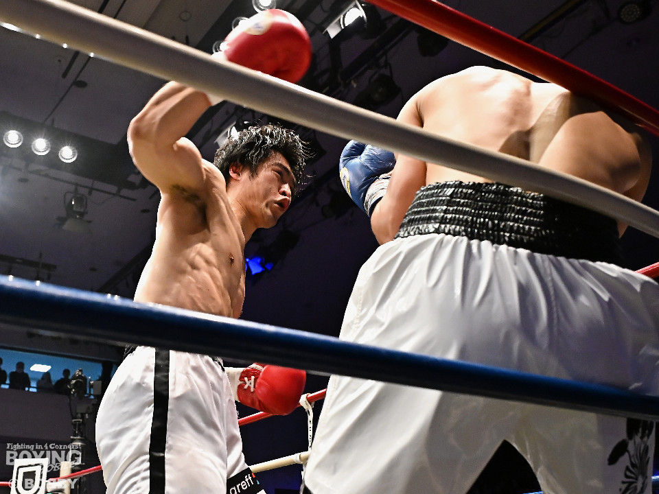 元世界ランカーの赤井英和氏の長男・赤井英五郎(31=帝拳)が17日、後楽園ホールで開催された「DYNAMIC GLOVE on U-NEXT Vol.39」71.0kg契約6回戦でベー・ドンミン(29=韓国)と対戦した。