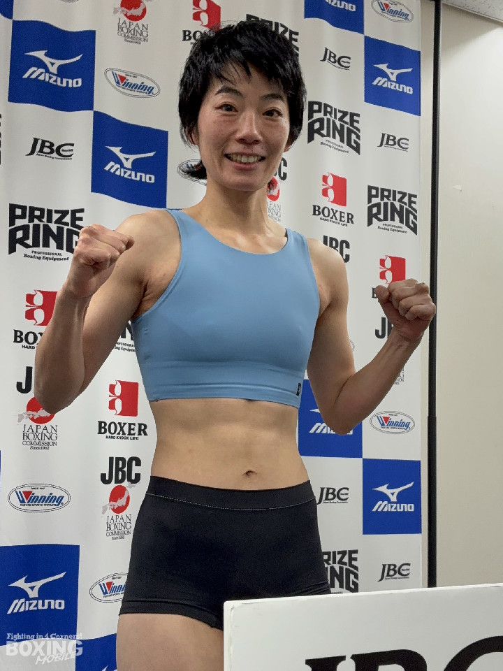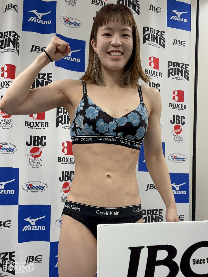 日本女子ミニマム級王座決定戦の前日計量が9日、都内の日本ボクシングコミッション本部事務局で行われ、ベルトを争う同級2位の前原香那枝(36=三迫)と同級5位の守隨あゆみ(しゅずい・あゆみ/31=TEAM10COUNT)が計量に臨んだ。