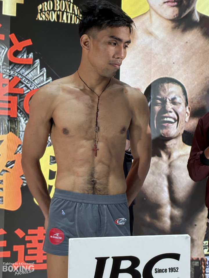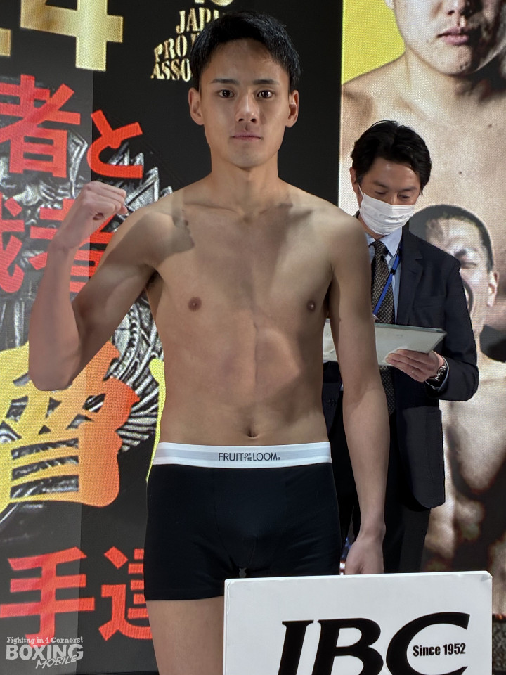日本バンタム級5位の坂井優太(20=大橋)が23日、東京ドームシティ内のblue-ing(ブルーイング)で前日計量に臨み、フィリピン同級11位のウェスレイ・カガ(25=比)と対峙した。