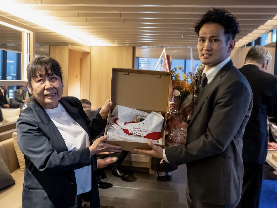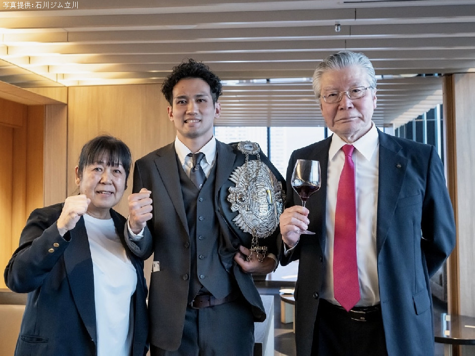 式では、齋藤の勤務先である立飛ホールディングスの社長から報奨金が贈られたほか、石川ボクシングジムの石川久美子会長からはジュースが手渡され、地域とジムが一体となって新王者を称えた。26年ぶりの快挙に、立川のボクシング熱は一気に高まっている。