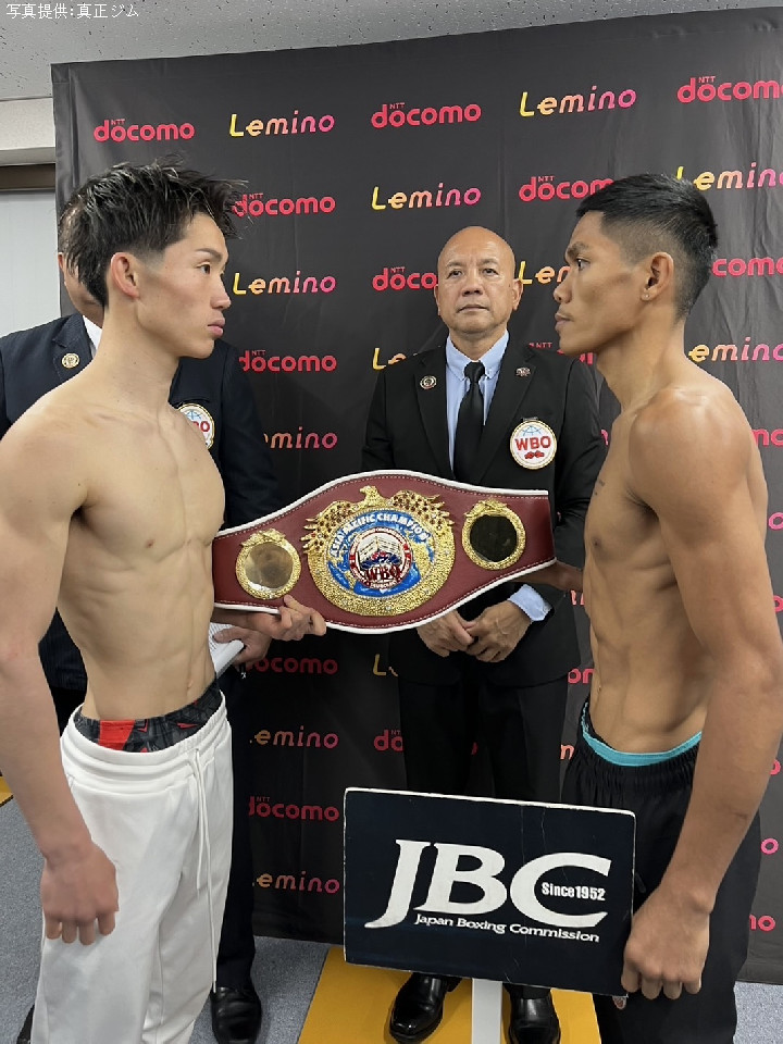 WBOアジアパシフィック・バンタム級王座決定戦の前日計量が18日、大阪市内の関西JBC事務局で行われ、同級2位の伊藤千飛(20=真正)と同級8位のエイドリアン・レラサン(27=比)が計量に臨んだ。