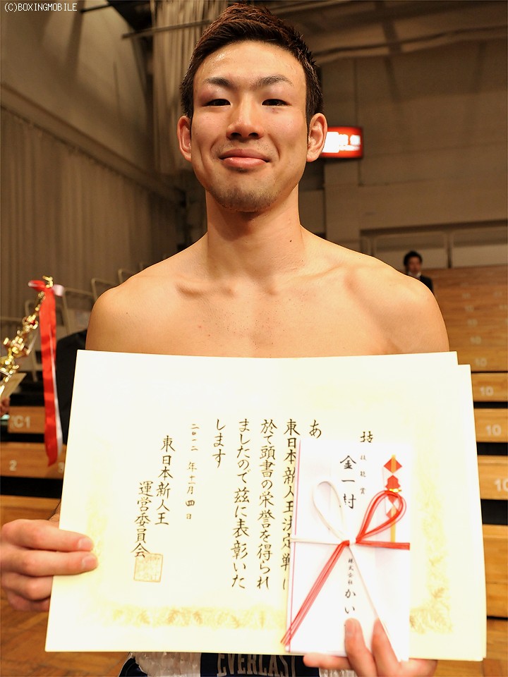 「応援してくれる人達の前で優勝でき、それも1ラウンドKOで勝てて嬉しいです。自分としては最後まで戦うつもりでしたが、最初からガンガンいけたのが最高の結果につながった。これからMVPに相応しいボクサーになれるよう頑張ります!!全日本で勝つことは当然ですが、西軍の選手はパンチがあると聞いています。打ち合って僕が絶対にKOで勝ちます!!」