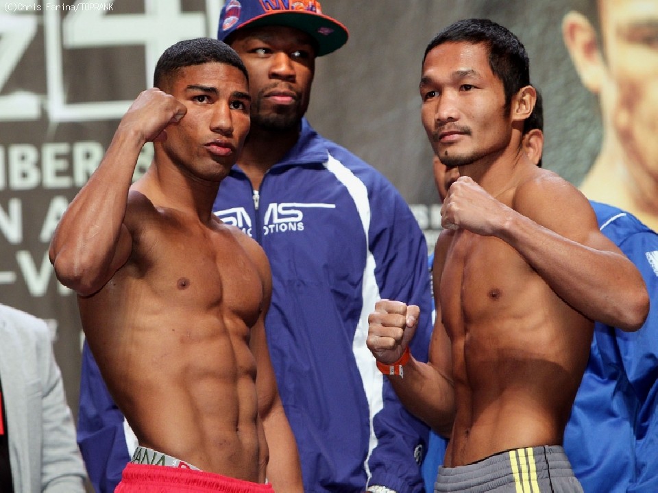 また、IBF世界ライト級タイトルマッチに登場する王者ミゲール・バスケスは135ポンド、期待の挑戦者メルシト・ヘスタ(比)は134ポンドでこちらもパスした