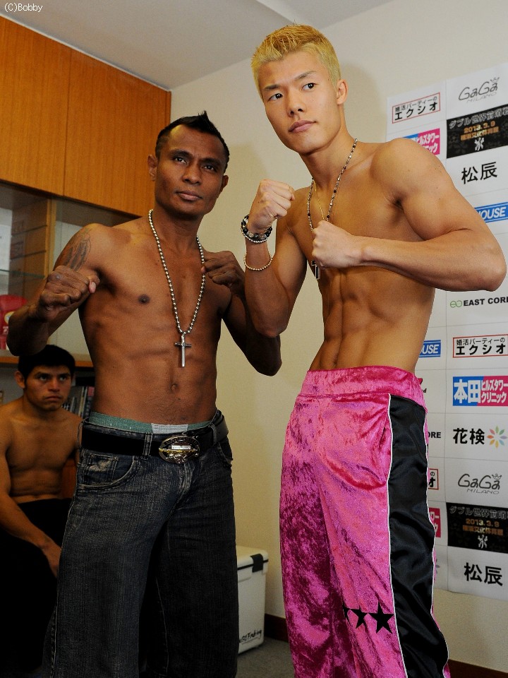 計量後の和毅は、試合の見所について、「スピードかな。全体のスピード。全体的に結構進化してると思う。明日見てくれたらわかると思う」と意気込み、対戦相手について、「あまり見てないけど、小さいなと思う。自分のボクシングをするだけ。明日は99%KOで勝つ5ラウンドまでに終わる」と自信をみせた。