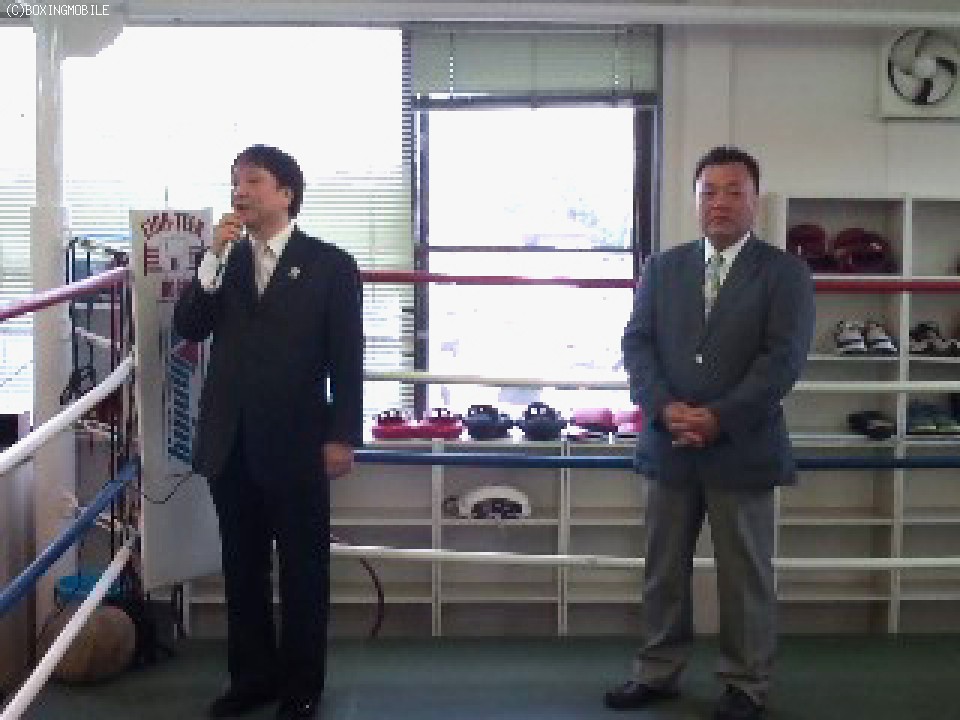 ジムのリングに上がった18古河ジム・長嶋清会長は「3月に古河駅前のジムを閉めましたが、6月に入り新たなジムをオープンすることができました。北関東から世界チャンピオンを誕生させられるよう頑張ります」と力強く再出発の挨拶となった。