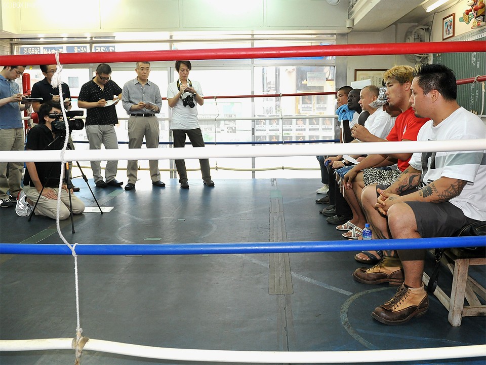 56年ぶりとなる日本のヘビー級王座決定戦が7月25日、東京・後楽園ホールで行われる。その試合で拳を交える1位の藤本京太郎(27=角海老宝石)と2位のオケロ・ピーター(41=緑)、さらにアンダーカードに出場する選手らが10日、角海老宝石ジムで揃って会見に臨んだ。
