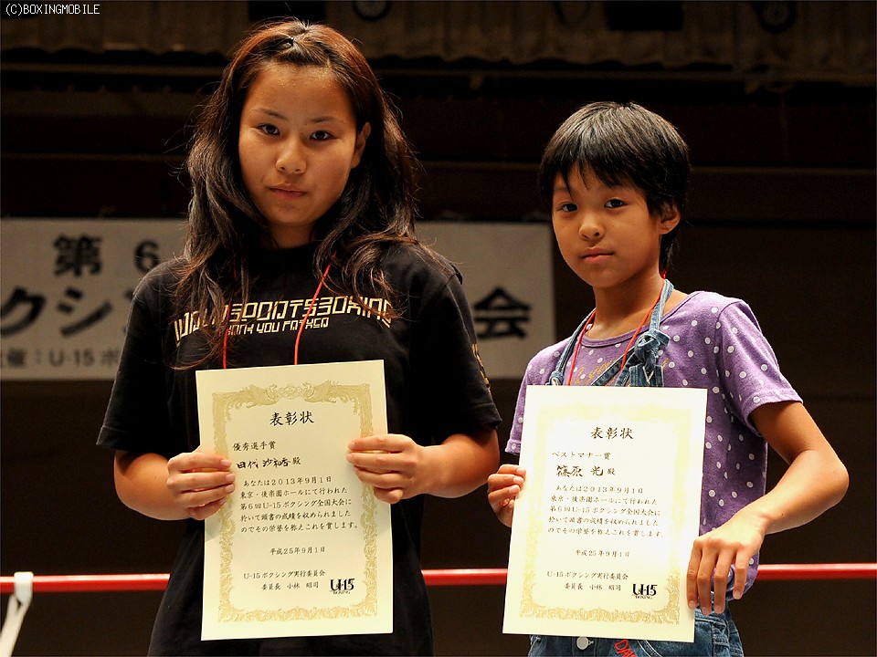 また、小中共通の女子優秀選手には47.5キロ級に出場した中3の田代沙和香選手(東京都)が選ばれ、同じく女子のベストマナー賞には30キロ級に出場した小5の篠原光選手(埼玉県)が選ばれた。