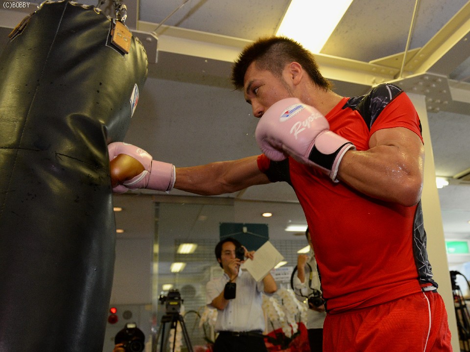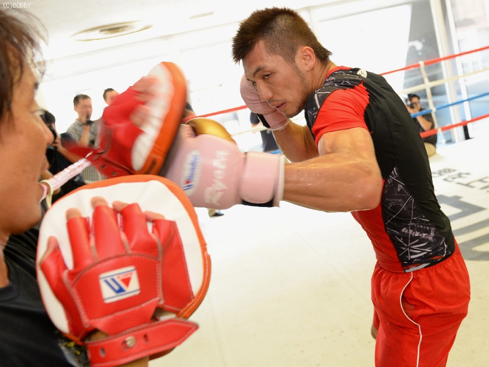 柴田戦後、日本と東洋太平洋の両ランキングで1位に入った村田は、すでに9月上旬から軽いトレーニングは開始していたという。そのため、この日はウォーミングアップのあとシャドーボクシングを3ラウンド、葛西裕一トレーナーを相手にミット打ち5ラウンド、さらにサンドバッグ打ち3ラウンドなど約1時間半、汗を流した。シャドーボクシングではコンパクトな左フックを振り抜いたり右脇を締めて左ジャブを打ったり、課題を意識した動きをみせた。ミット打ちでは柴田を倒した伸びのある右ストレートを放つなど、早くも戦闘モードに入りつつある様子だった。パンチを受けた葛西トレーナーは「ビルを解体するときに使う鉄球があるじゃないですか。村田のパンチはあんなイメージなんですよ。グオォーンと伸びてきて破壊力があるんです。それでいてときには切れのあるパンチもあるんです」と解析している。