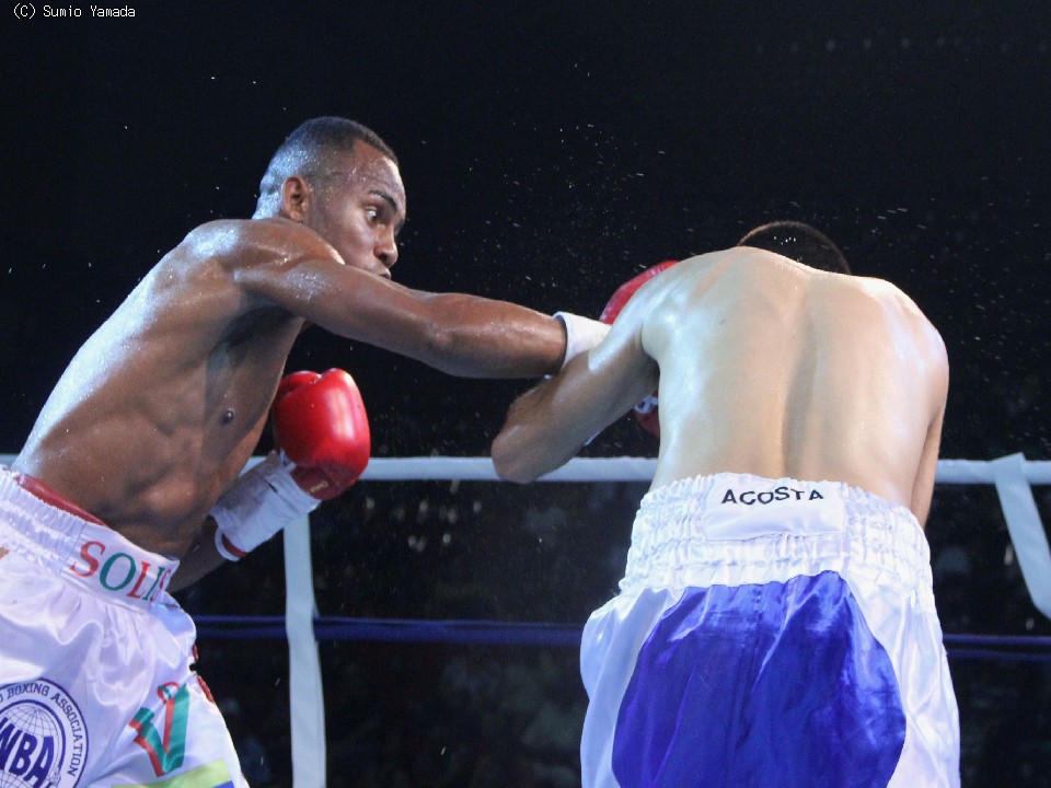 6連敗後に6回戦で判定勝ち、その後は6回戦で判定負け―そんなアコスタが世界15位に突然入ってきたのは4月のこと。WBA恒例の「KOドラッグ」イベントに合わせたソリスの防衛戦とはいえ、ここまで露骨で無謀なマッチメークは前代未聞といえる。