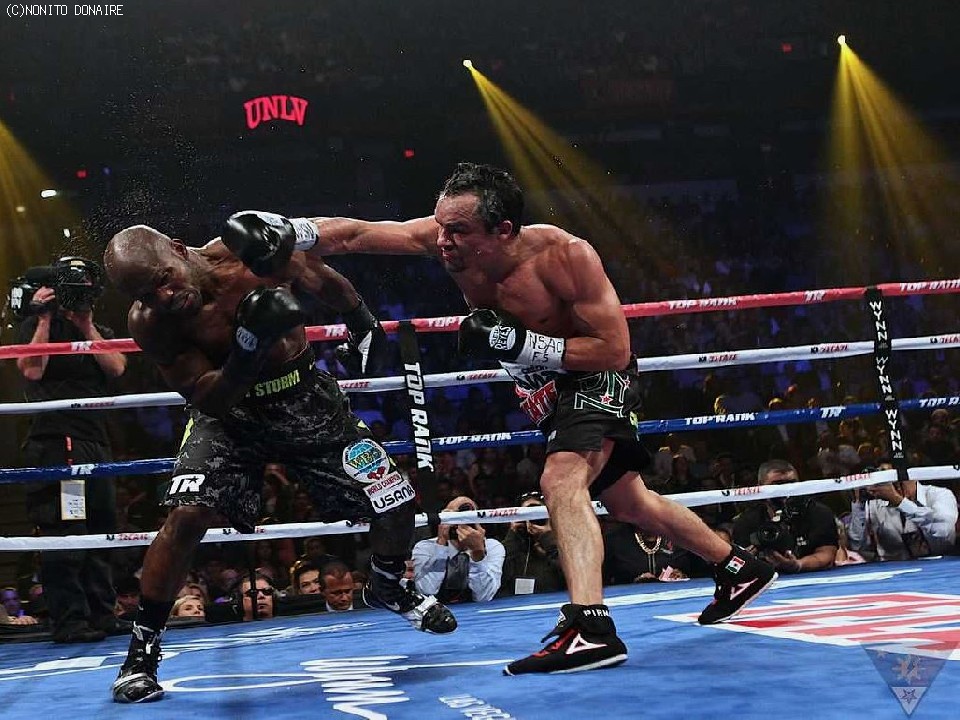12日(日本時間13日)に米国ネバダ州ラスベガスで行われたティモシー・ブラッドリー(米)対ファン・マヌエル・マルケス(メキシコ)。WOWOW「エキサイトマッチ」で視聴した方は気付いたかもしれないが、リングサイドにはノニト・ドネア(比/米)がカメラマンとして撮影していた。