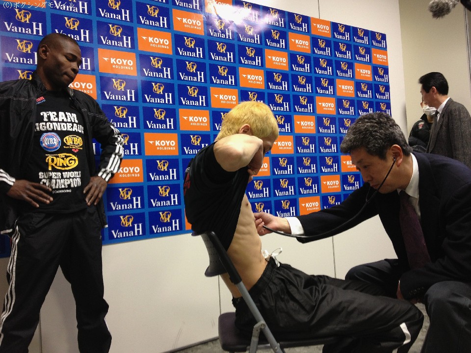 WBO世界スーパーバンタム級タイトル戦の予備検診が25日、JBC事務局で行われた。チャンピオンのギジェルモ・リゴンドー(キューバ/米)と挑戦者、天笠尚(山上)の身長差は17.5cm、リーチ差は8cmと体格面では天笠に有利な数値が出た。