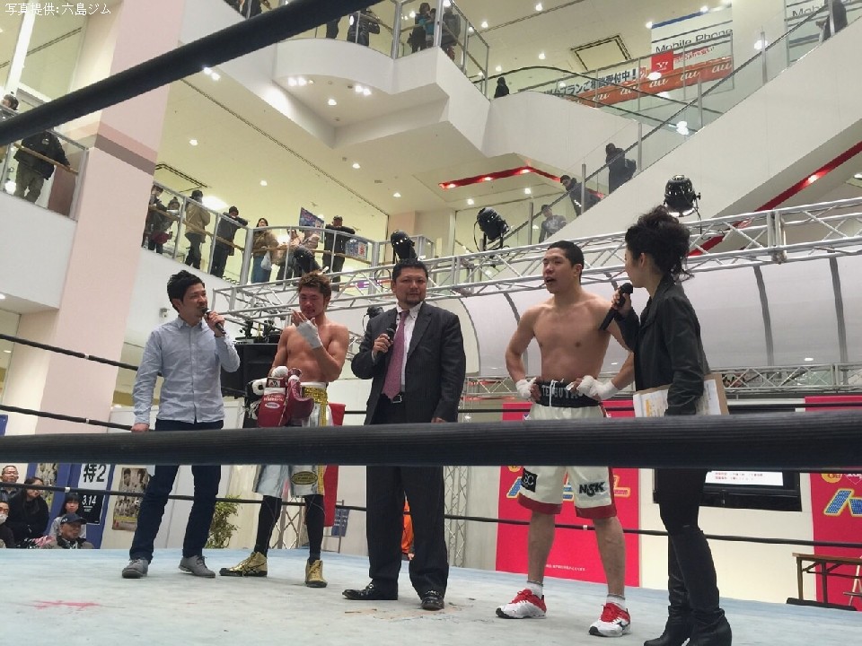 このイベントを開催した六島ジムの枝川孝会長は「ボクシングを広く一般の人にも観てもらいたかった。プロのスパーリングや小・中学生の体験教室でボクシングの迫力と楽しさを感じてもらえたと思う」と、大きな拍手と試合本番さながらの声援で包まれた会場に手応えを感じた。
