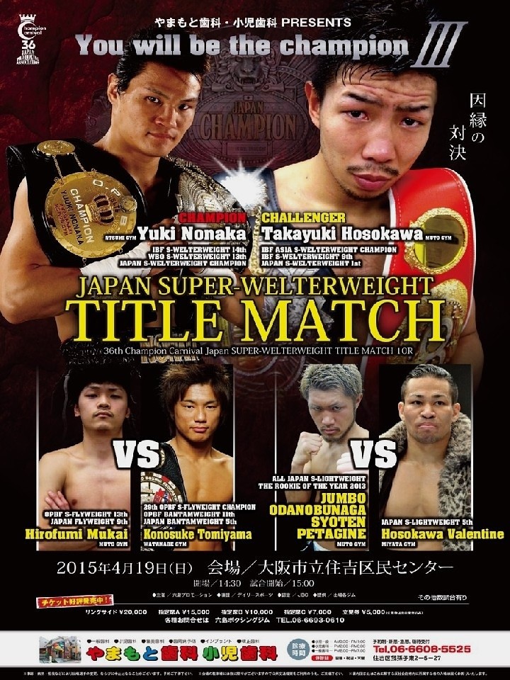 六島ジムが主催する4月5日の610ヤングフェスティバル4と4月19日の日本スーパーウェルター級タイトル戦、王者・野中 悠樹(渥美) と日本同級1位・細川 貴之(六島)の対決に注目したい。