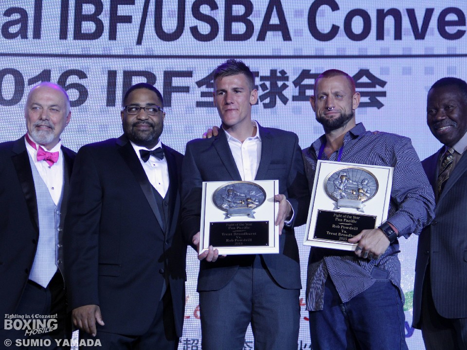 写真はIBFが年間最優秀アジア太平洋試合を演じたトレント・ブロードハーストとロブ・パウドリルを表彰したときのもの。こうしたIBF総会の写真をご紹介しよう。