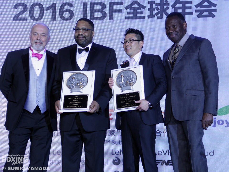 柴田直子の代行として、所属先であるワールドスポーツジムの斉田竜也会長が、王座最多防衛賞を受け取る。同時にジムも、女子世界戦で最も活動的なプロモーションとして表彰された。