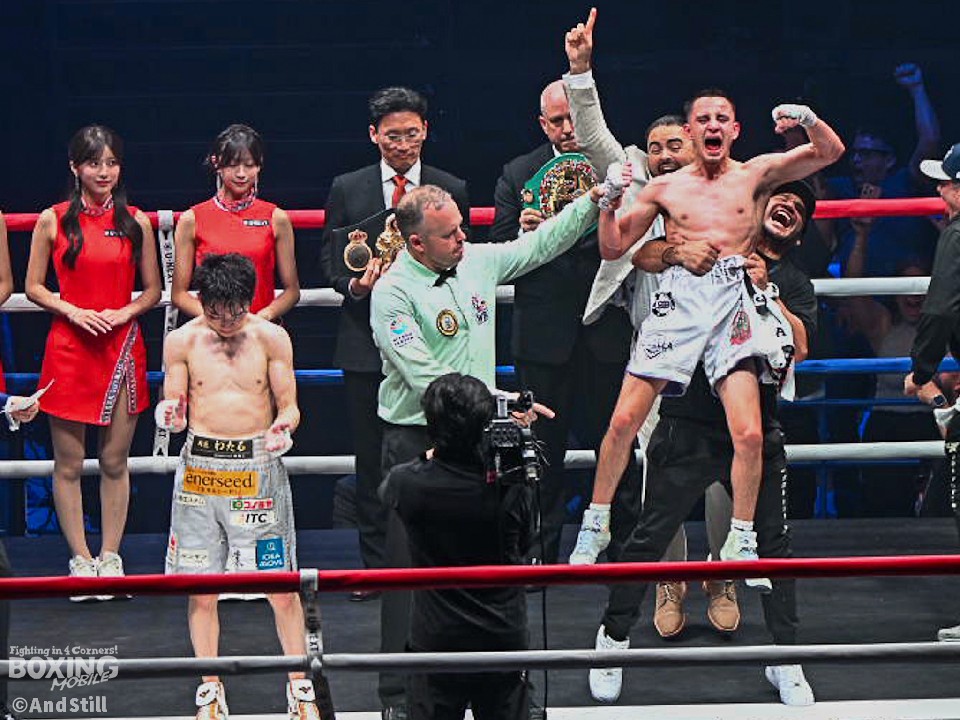 試合が動いたのは5回、コーナーに詰めた拳四朗がワンツーでダウンを奪った。立ち上がったサンドバルは、ロープまで下がってワンツーで追撃を免れた。その後は、一進一退の攻防戦が続いたが、インパクトのある有効打は少ないものの、ラウンドを重ねるごとに徐々にポイントを稼いだサンドバルが、ジャッジ二者の支持を受けて新チャンピオンに輝いた。