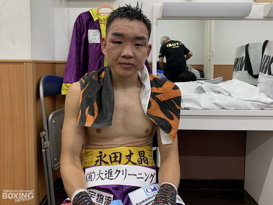 一方、初防衛に失敗した永田は、「前半はやりづらさがあった。後半は攻めることができたが、採点に響かなかった。7ラウンドに効かせた時に、いけるかなと思ったが、そこから崩せなかった。相手がサウスポーということもあり、いつもと攻め方を変えて、前後よりも常に相手を追い詰めながら進めようと思ったが…。今後のことは、まだ考えられない」と悔しさをにじませた。