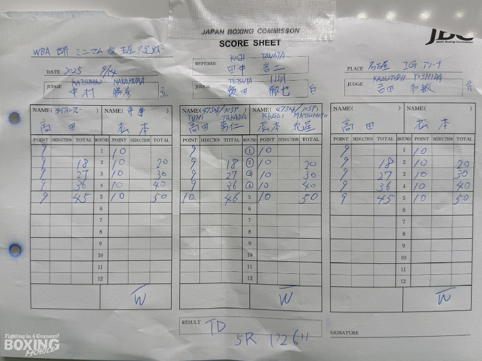 WBA(世界ボクシング協会)ミニマム級王座決定戦が14日、名古屋IGアリーナで開催された「Lemino BOXING トリプル世界戦」で行われ、同級1位の高田勇仁(27=ライオンズ)と同級2位の松本流星(27=帝拳)が初戴冠を懸けて対戦した。