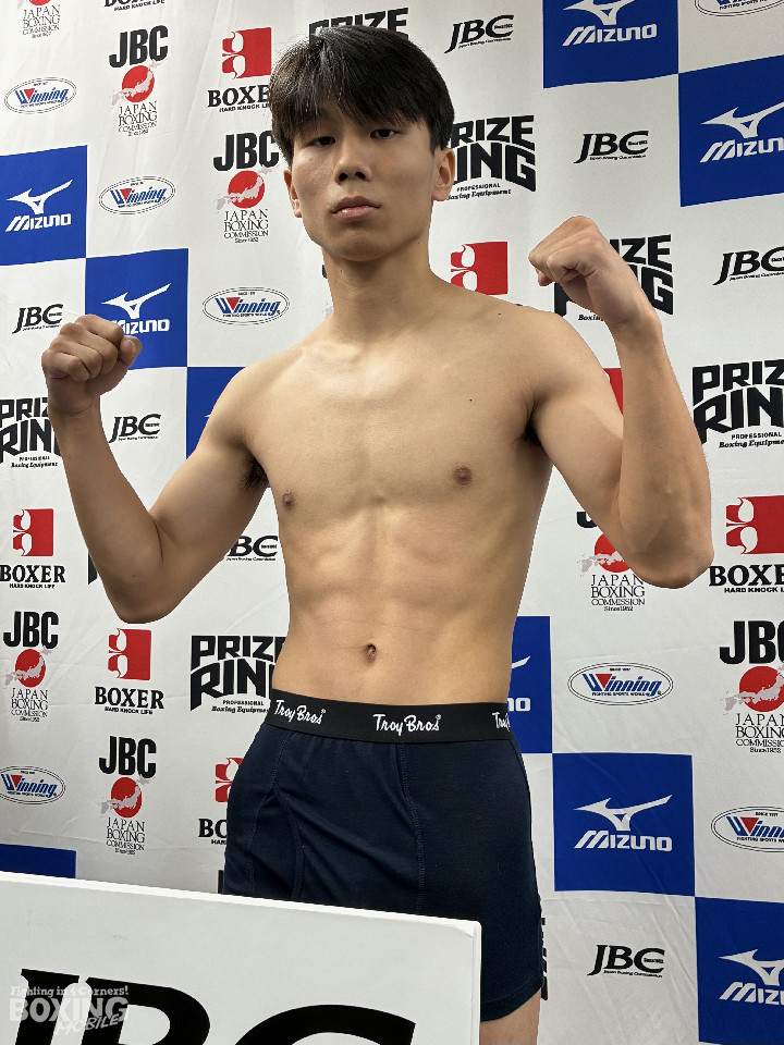 ライトフライ級リミットを200g下回る48.7sでクリアした寺下は、「相手から強そうな雰囲気を感じた。気持ちが高ぶっている」とコメント、内に秘めた闘志を感じさせた。