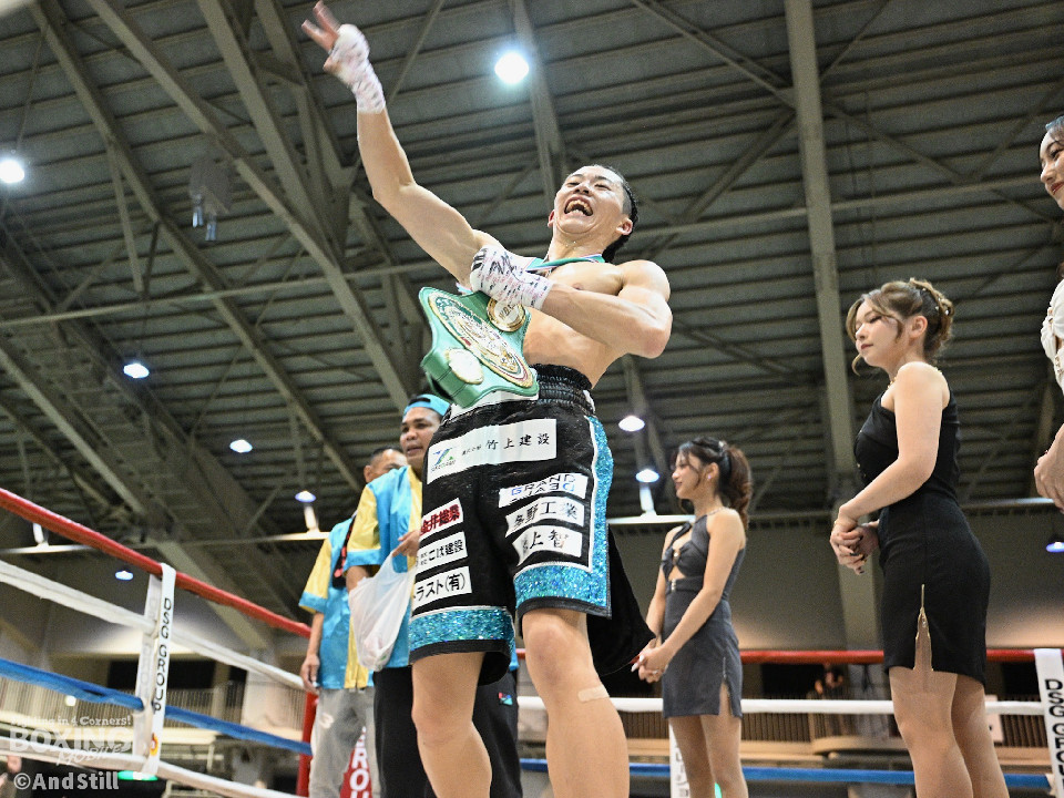 初回から藤野はキレのあるジャブで主導権を握り、サウスポーにスイッチすると、鋭い左オーバーハンドをヒット。緩急のあるコンビネーションでリズムを作り、第5ラウンドには、右ボディでダウンを先取。続く6回、狙いすました左ボディを打ち抜くと、ヤンは立ち上がれず、10カウントが数えられた。