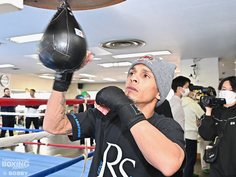 サンティアゴは今年3月、岩田翔吉(29=帝拳)を下して王座を獲得。以降、王者としての磨きをかける中で迎える統一戦となる。今回は家族を伴って来日し、公開練習には次男のジェイリエル・サンティアゴ君(9)も姿を見せた。