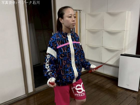 さすがに可愛い女子選手に本気で打ち込むわけにはいかないが、軽く当てさせてもらう。