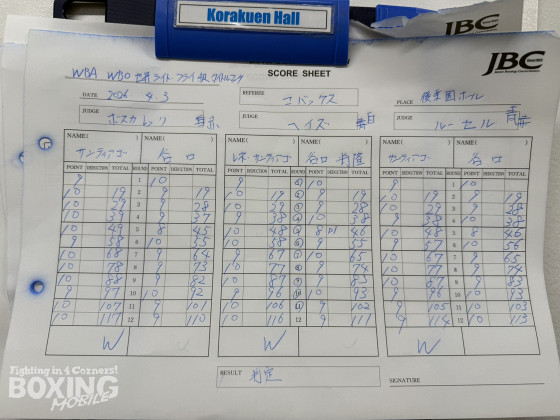 WBA(世界ボクシング協会)・WBO(世界ボクシング機構)世界ライトフライ級タイトルマッチが3日、後楽園ホールで開催された「TREASURE BOXING PROMOTION 12」のメインイベントで行われ、統一王者のレネ・サンティアゴ(33=プエルトリコ)と挑戦者の谷口将隆(32=ワタナベ)がハイレベルな攻防を繰り広げた。