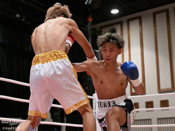 こちらはライト級、相手はミニマム級。9階級差の体格差で押し込もうとするが、気づけばポジションを入れ替えられ、逆にコーナーへ追い詰められていた。