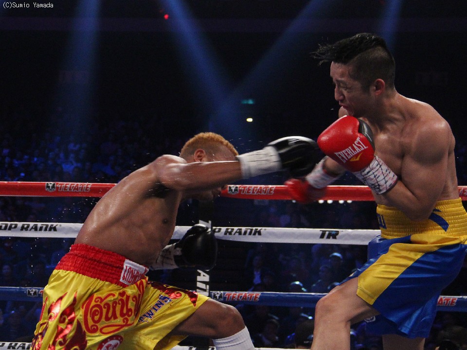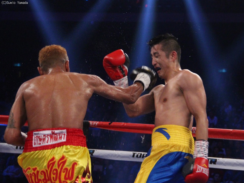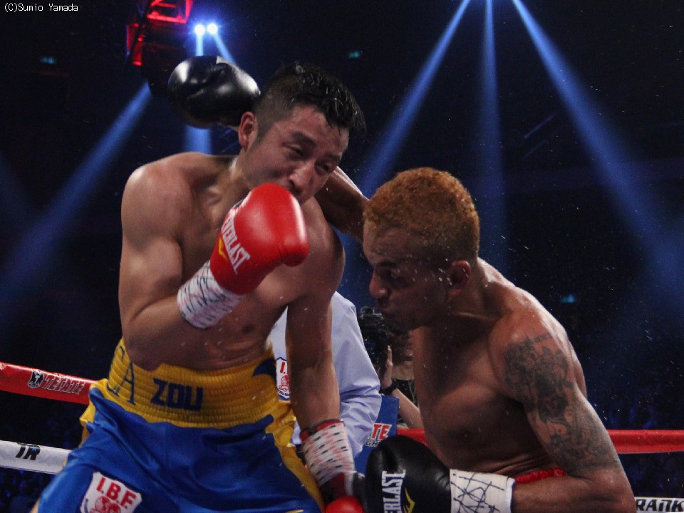 ゾウに75万ドル(約9000万円)、アムナットに25万ドル(約3000万円)という軽量級では破格の報酬が約束された一戦は、まず王者が初回を支配して始まった。波瀾は続く2回に待っていた。アムナットがバランスを崩したところにゾウの左が当たり、王者が不運なダウンを喫したのだ。これで一気に流れはゾウに傾くかと思われたが、以後は再びこう着状態となった。長い左ジャブを突いてアウトボクシングを狙うアムナットと、軽打ながら手数で攻め込みたいゾウ。ともに完全にペースを握るまでには至らないが、より多くの時間を支配していたのはアムナットだった。アマ時代には3戦1勝2敗とゾウに負け越しているが、プロのスタートは1年早く、8試合多く経験を積んでいる。井岡一翔(井岡)、マクウィリアムス・アローヨ(プエルトリコ)を相手に接戦をものするなど修羅場も潜ってきた。7回と最終回はゾウの攻勢を許したが、それ以外は微妙なところで距離をコントロールしてジャッジの支持を取りつけていった。試合が終わると同時にふたりとも手を挙げて勝利をアピールしたが、採点は三者一致の116対111でアムナットだった。「(中国の)10億人を泣かせる」という試合前の宣言を実行し、3度目の防衛に成功したアムナットは15戦全勝(5KO)。敗れたゾウは7戦6勝(1KO)1敗。「きょうは負けたけれど、また違う旅が始まる。人生と同じ」と再起を誓った。