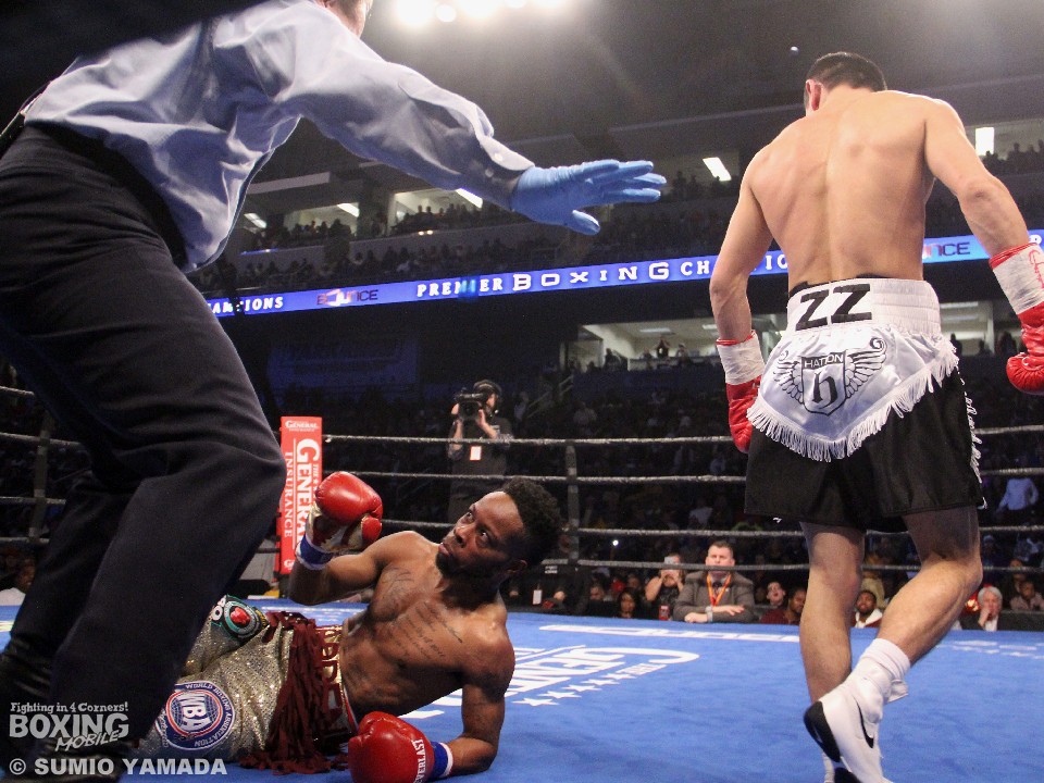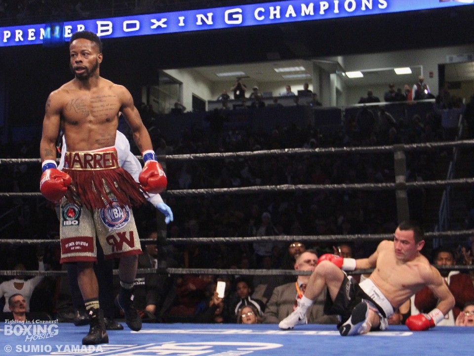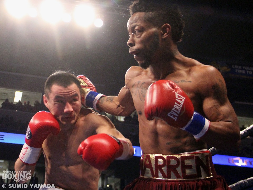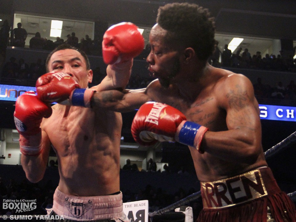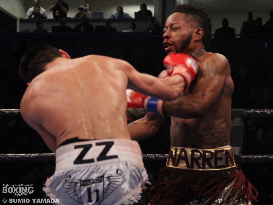バンタム級では19対5のオッズがひっくり返る番狂わせが起こった。先制したのはサウスポーのウォーレンだった。いきなり初回に2度のダウンを奪い、圧倒的優位に立ったのだ。2回も支配したウォーレンだが、そのあとから雲行きが怪しくなっていく。3回、ザキヤノフの反撃を受けダウンも喫したが、これはスリップと判定されている。初回のダウンで攻めて出ざるを得なくなったザキヤノフはスーパー王者をロープに詰めて上下にパンチを浴びせるなどして挽回。終盤に入るころにはウォーレンは序盤の貯金を吐き出していた。ひとりが115対111でウォーレンの勝利と採点したが、残るジャッジ二者は115対111、116対110でザキヤノフを支持した。暫定の2文字を消し去り、スーパー王者になったザキヤノフは28戦27勝(18KO)1敗。初防衛に失敗したウォーレンは17戦14勝(4KO)2敗1分。