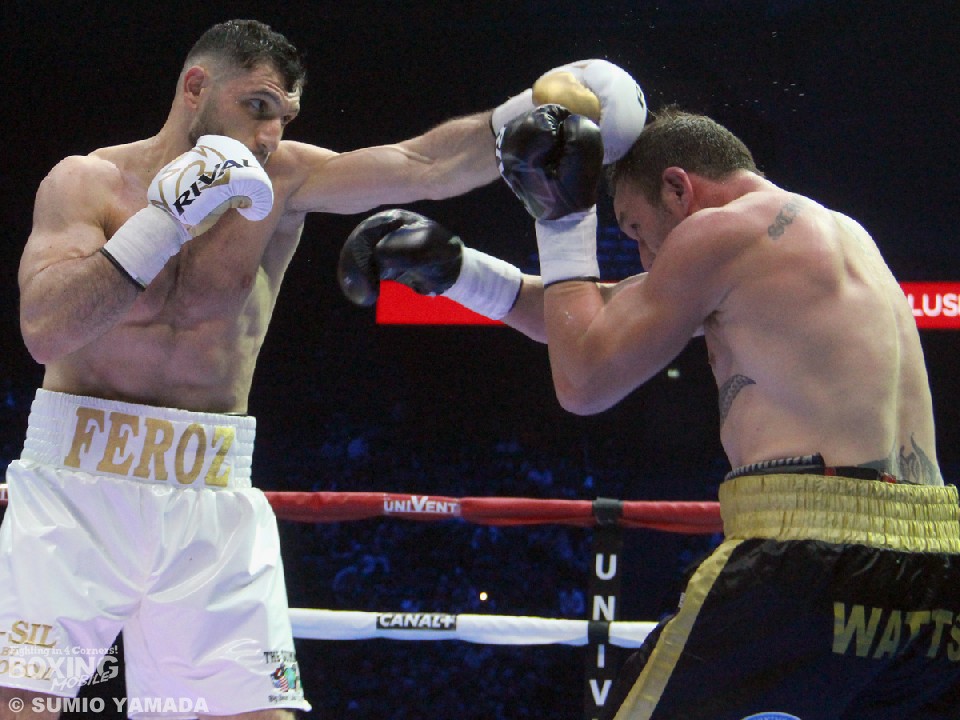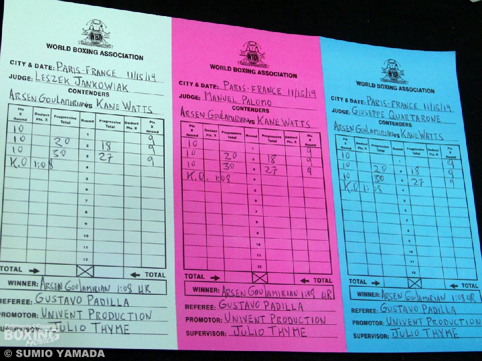 試合:グラミリアンは同級暫定王座を昨年3月に獲得すると、同年10月のノンタイトル戦後にスーパー王者に格上げされた初防衛戦。初回からプレッシャーをかけ攻め込むグラミリアンは、世界初挑戦のワッツを守勢に追い込んだ。続く2回、3回も左右のパンチをドンドンと打ち込むグラミリアンのペース。そして4回1分が経過した頃、左ボディを受けたワッツは一呼吸を置いて膝をつくダウン。そのままカウントアウトとなり、グラミリアンが4回1分8秒KO勝利でスーパー王座の初防衛に成功した。