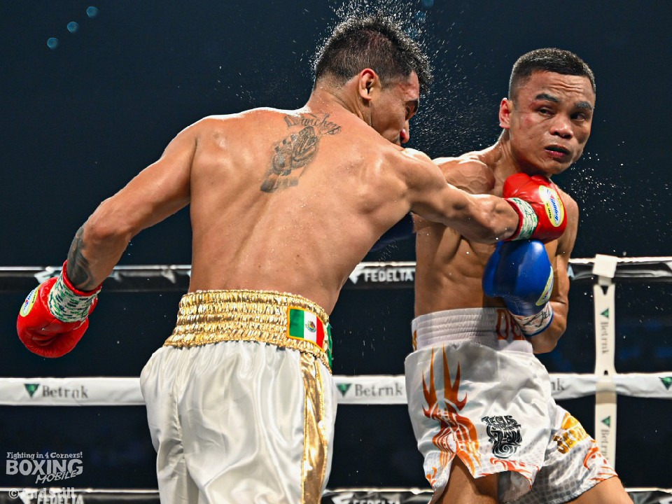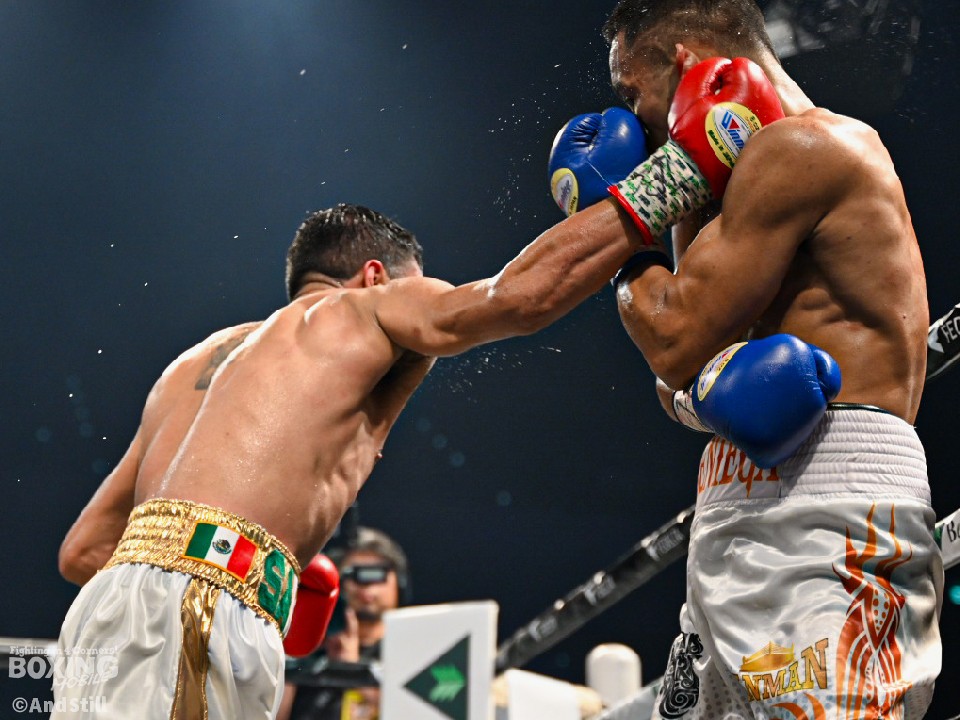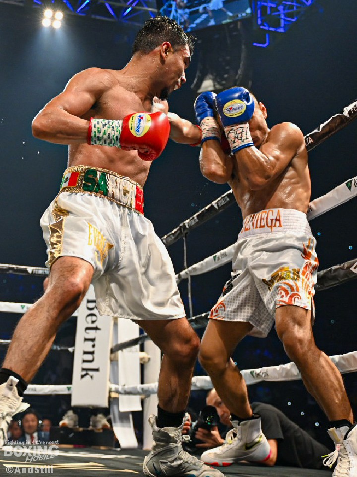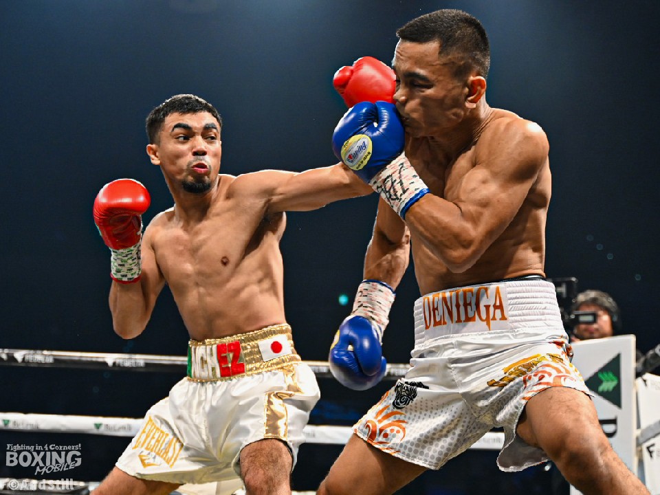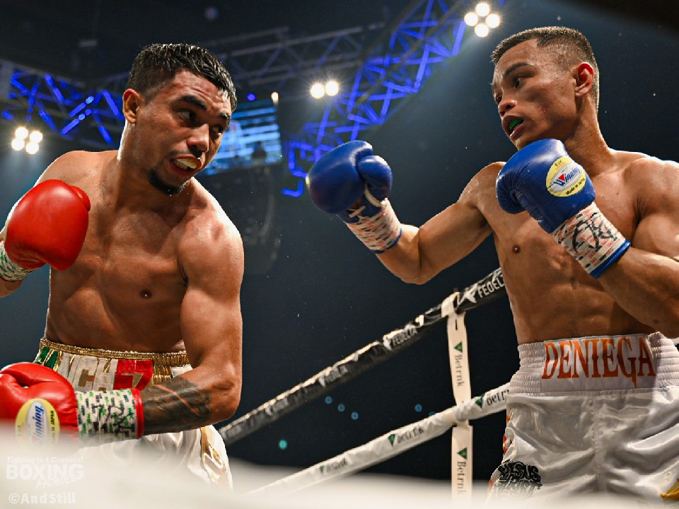 試合:WBO世界バンタム級10位のサンチェスとWBO-AP同級14位のデニエガが手を合わせた。サンチェスがプレスをかけてワンツー、左ボディから攻め立てるのに対し、サウスポー・デニエガは右フック、左アッパーで迎え撃ち対抗。サンチェスが圧力を強めて体力を削りにいった。3回、サンチェスは左フックを合わせるとボディにパンチを集めてジャッジに攻勢をアピール。続く回もサンチェスが上下に打ち分けポイントを加点した。左フックを強振するデニエガだが空を切った。中盤、仕留めにいきたいサンチェスだが、デニエガは決定打を避けるとリターンの左で応戦。それでもサンチェスのペースは変わらず。終盤も距離を詰めてワンツーを打ち込むサンチェスと左カウンターを返す構図が続いた。終始、アグレッシブな姿勢を見せたサンチェスが判定勝ちした。