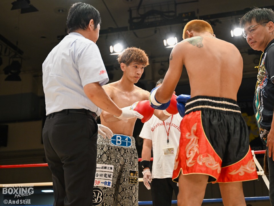 試合:サウスポー落合が中間距離から左ストレートをヒット。強弱をつけながら右アッパーから左ストレートを好打。2回、落合が左ボディを決めるとワランチャイは背中を向けて倒れ込みダウン。ここは再開に応じたが落合は左ボディストレートを突き刺しキャンバスに沈めた。試合後、マイクを向けられた落合は「ボディで倒せるとは思わなかった。練習していたカウンターが当たった。まだまだ実力が足りないのでしっかりと力をつけていきたい」と語った。