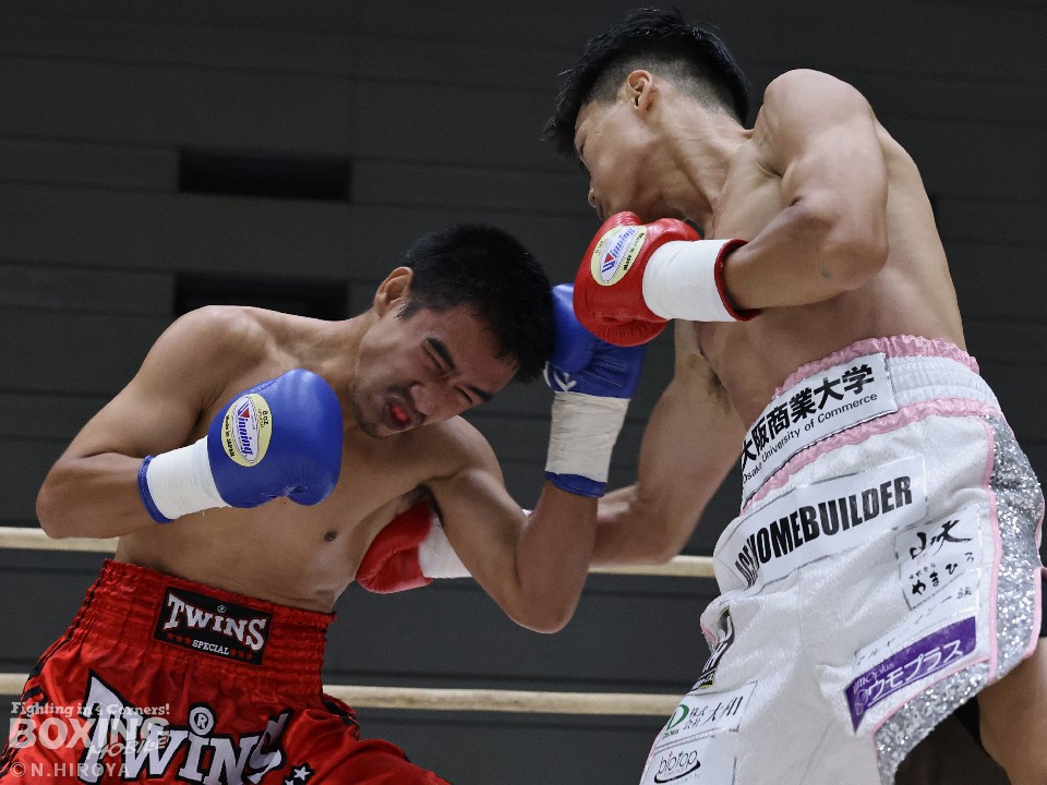 試合:前田の復帰戦!サウスポーの前田に対して前に出てきたトンカンだが、前田のジャブに突き返される。前田は初回、ノーモーションの左ストレートで踏み込むとサイドにステップ、ワンツーの後にはバックステップしてカウンターを回避した。2回、飛び込んできたトンカンにカウンターを合わせてダウンを奪うと、立ち上がりにパンチをまとめてレフェリーストップを呼び込んだ。