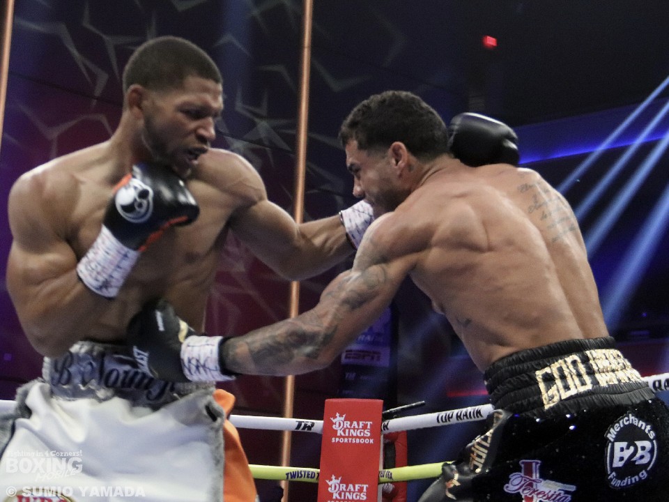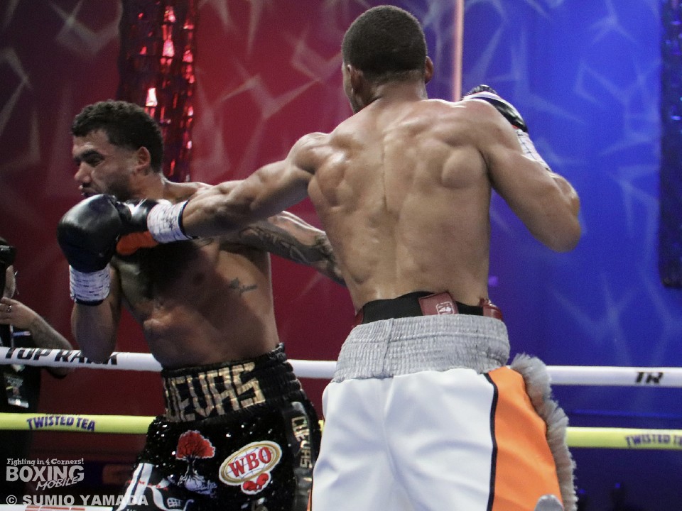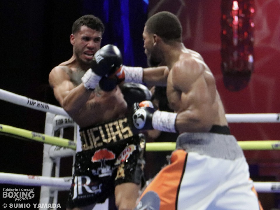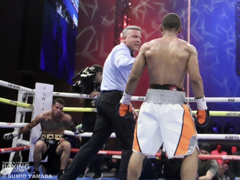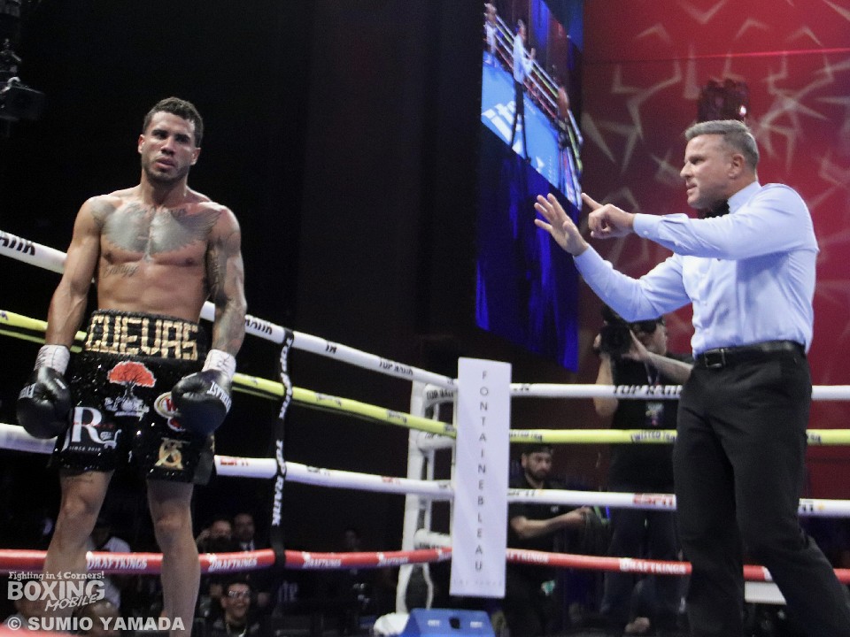 試合:鋭い左ショートでダウンを奪ったノーマン。クエバスは立ち上がったが、ファイティングポーズを取らず。