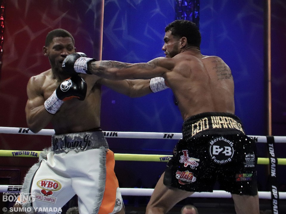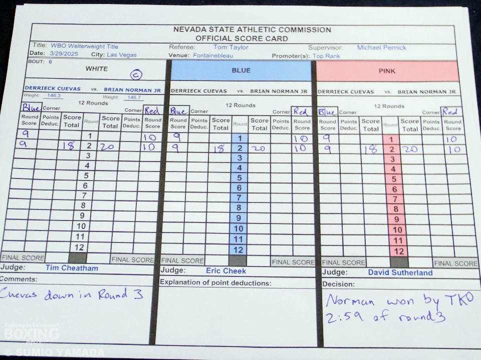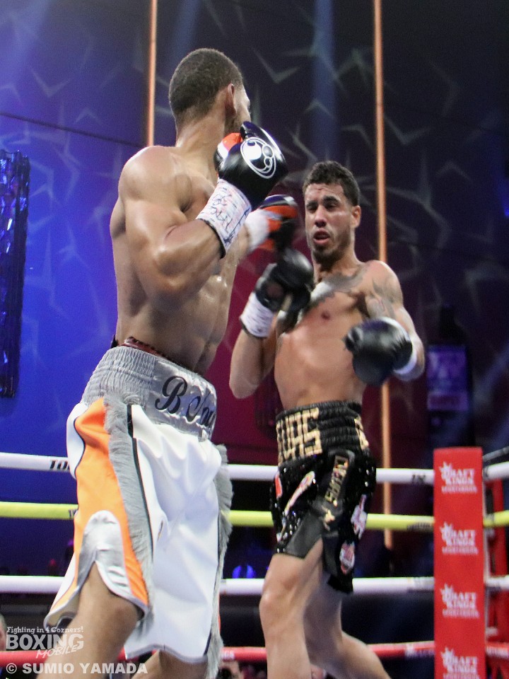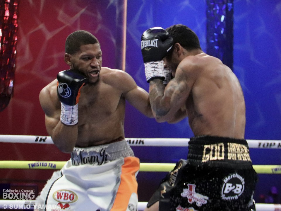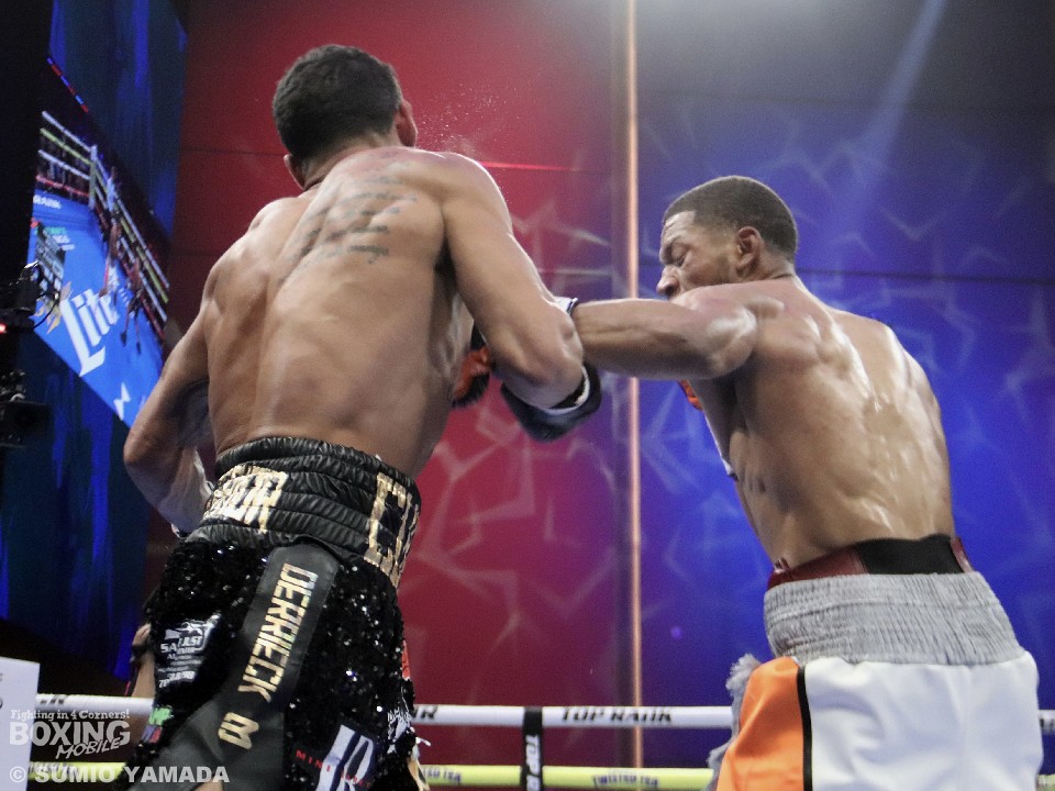 試合:鋭い左ショートでダウンを奪ったノーマン。クエバスは立ち上がったが、ファイティングポーズを取らず。