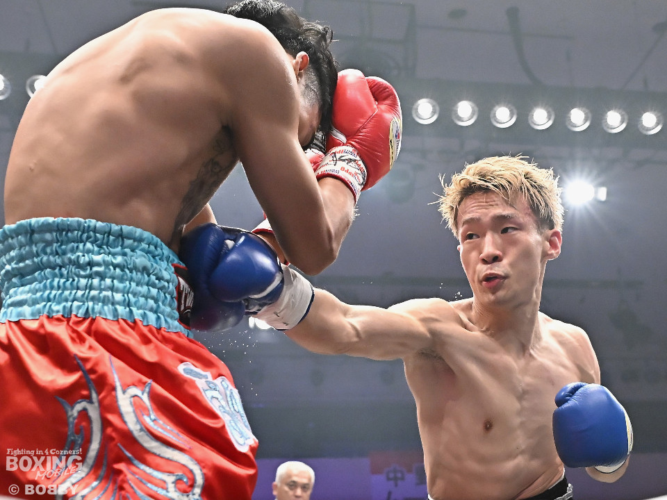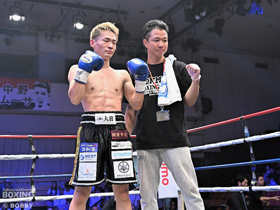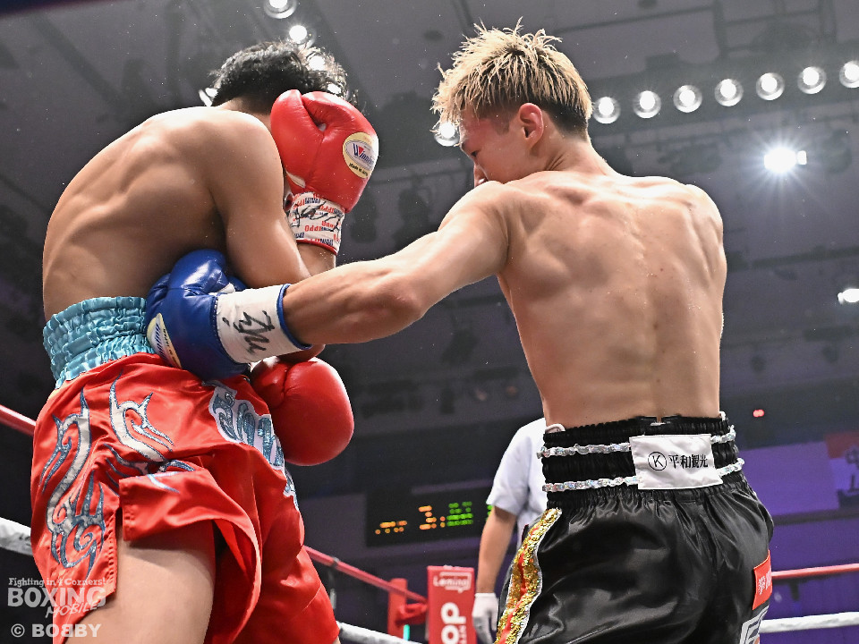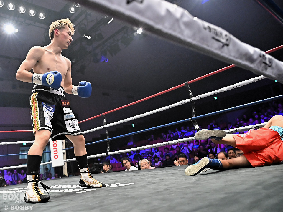試合:川下が打ち終わりを気をつけながら右ボディストレートを差し込み先制攻撃。さらにプレスをかけてワンツーを軸に攻め立てた。2回、強引に打って出たワットチャナチャイだが、川下はブロックで難なく対応。ジワリジワリと距離詰めると右ボディアッパーを突き刺しダウンを奪った。勝負が決まったのは3回。川下は強弱を意識しながらボディにパンチを集めてレフェリーストップに持ち込んだ。