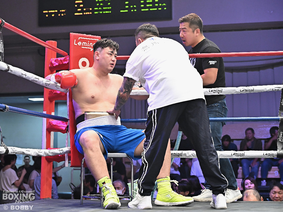 試合:松田がプレスをかけて左ボディを決めると積極的な攻撃で攻勢をアピール。2回、マハンハイリーは右フックを叩きつけるとサウスポーにスイッチして的を絞らせず。3回、松田は鼻血を流しながらもワンツーを軸に攻め立てるが、マハンハイリーは上下に打ち分けペースを維持。4回、マハンハイリーは左ボディから左アッパーにつなげると手数を増やして攻勢。後手に回った松田は必死に左ボディを返した。ジャッジ3者ともに2ポイント差をつけたマハンハイリーがアジア・ヘビー級チャレンジカップ決勝戦に進んだ。