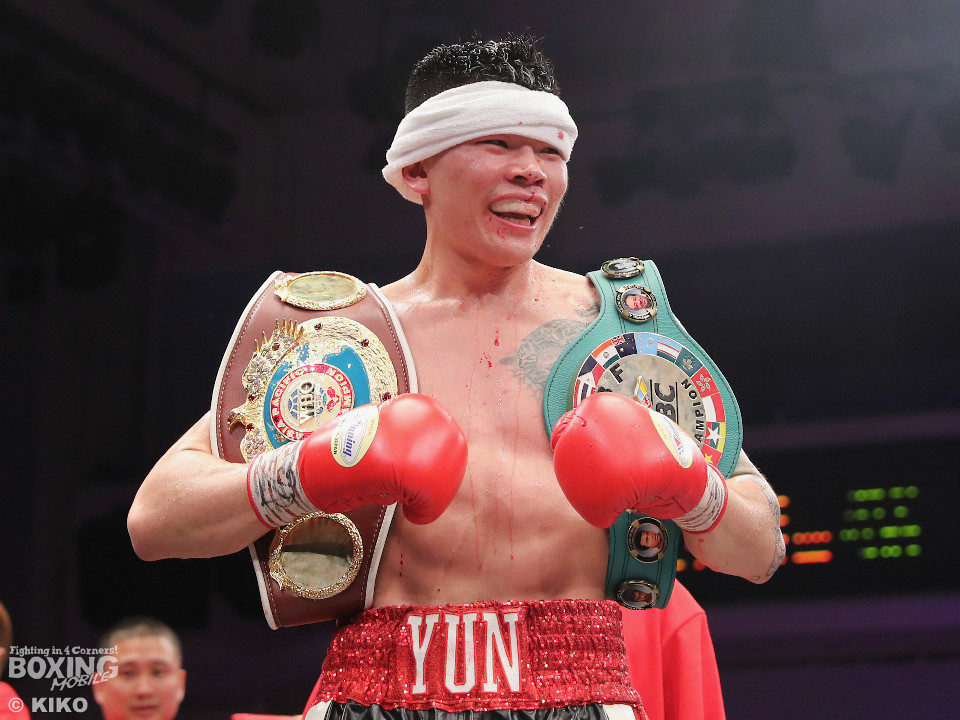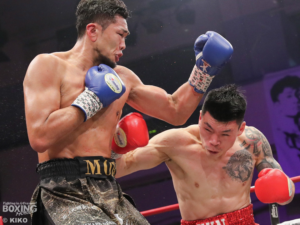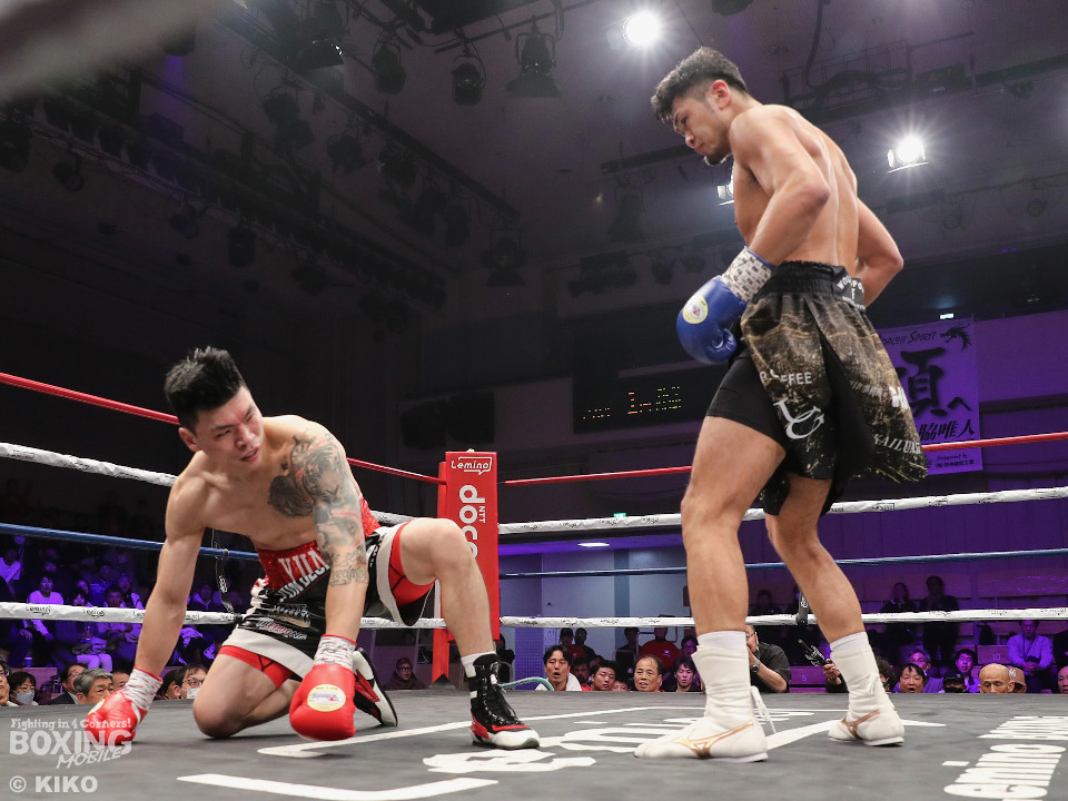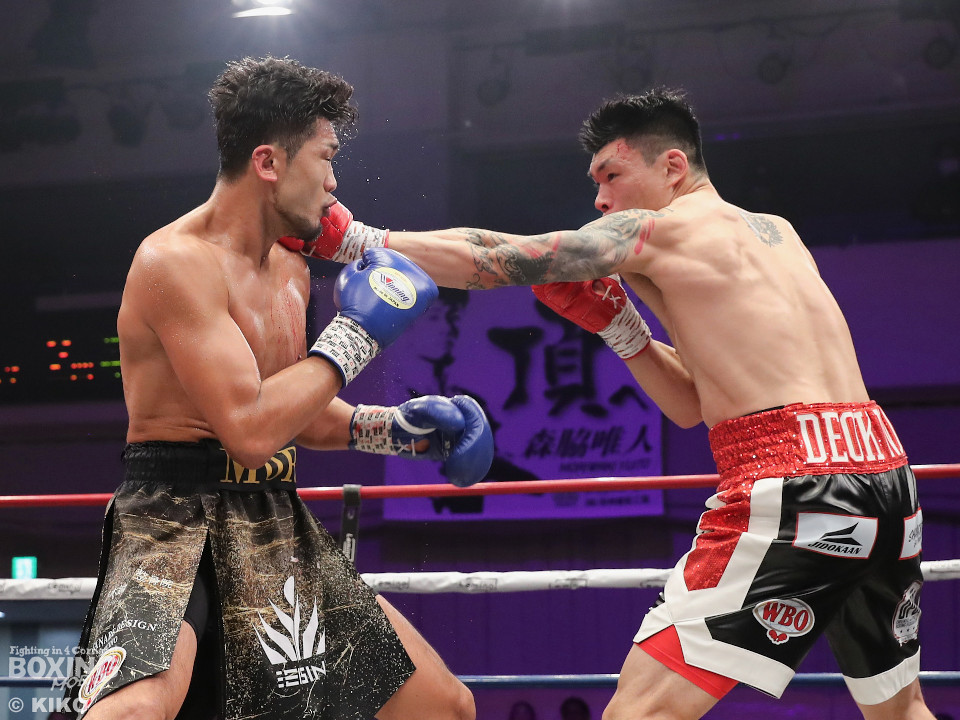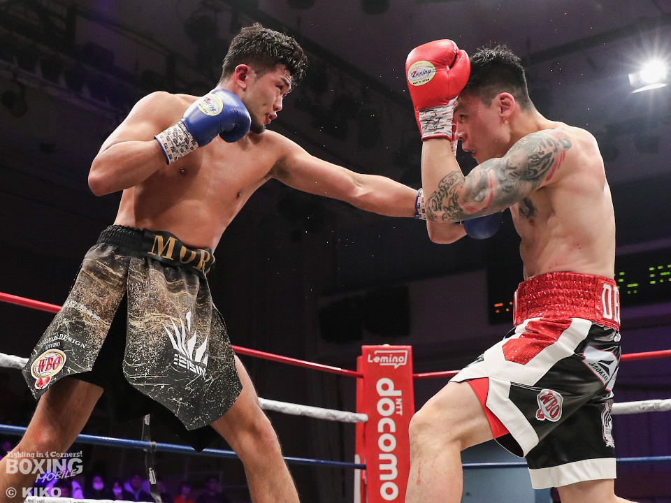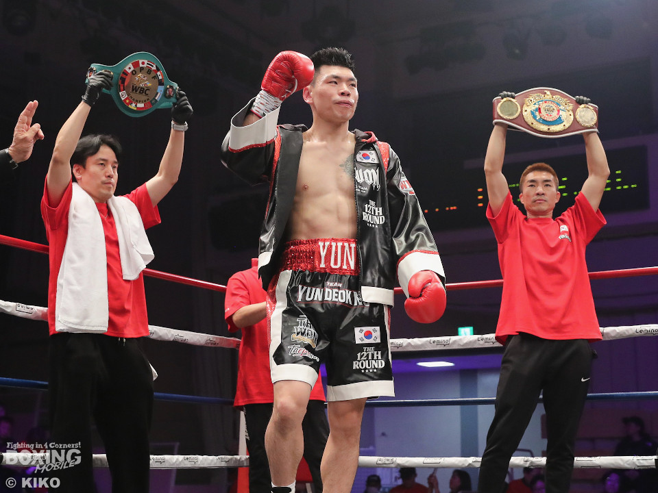 試合:東京五輪代表の森脇がプロ転向2戦目でOPBF東洋太平洋・WBO-AP王者のユンに挑戦した。森脇が前の手で距離を測りながら様子を伺うのに対し、ユンは右フックをヒット。それでも森脇は「想定内」とばかりにニヤリ。ラウンド終了間際、森脇は右カウンターでダウンを奪う絶好のスタートを切った。2回、激しいパンチの応酬の中、頭がぶつかり森脇は左目上をカット。ドクターチェック後、強気の打ち合いで会場を盛り上げた。3回、ユンはショートアッパーを織り交ぜたコンビネーションで反撃。4回、偶然のバッティングで今度はユンが左目上をカット。ユンの傷が深く1度目のドクターチェックでレフェリーはこれ以上の試合続行不能と判断。既定のラウンドに達していいないため、負傷引き分けでユンが防衛した。