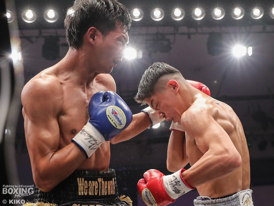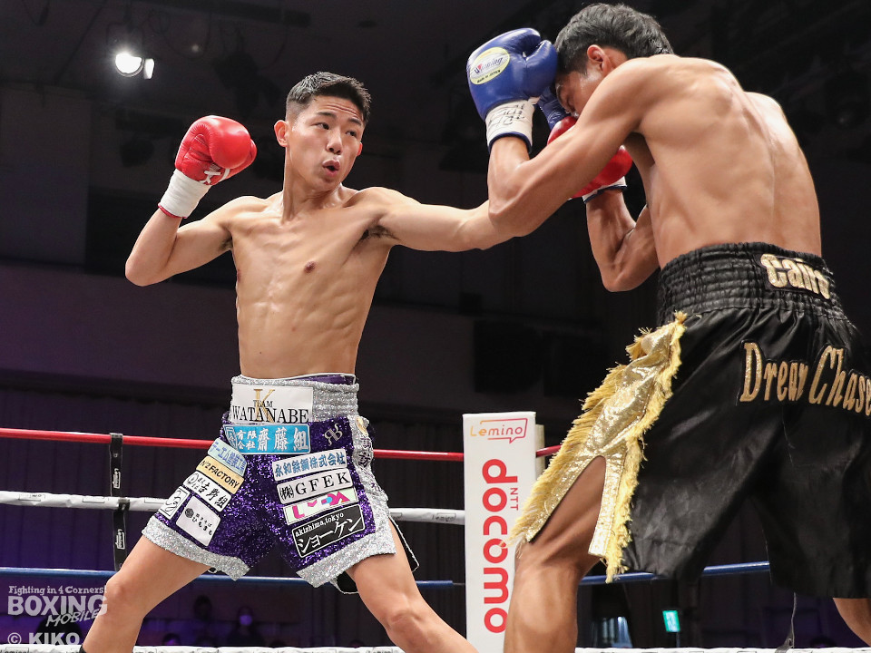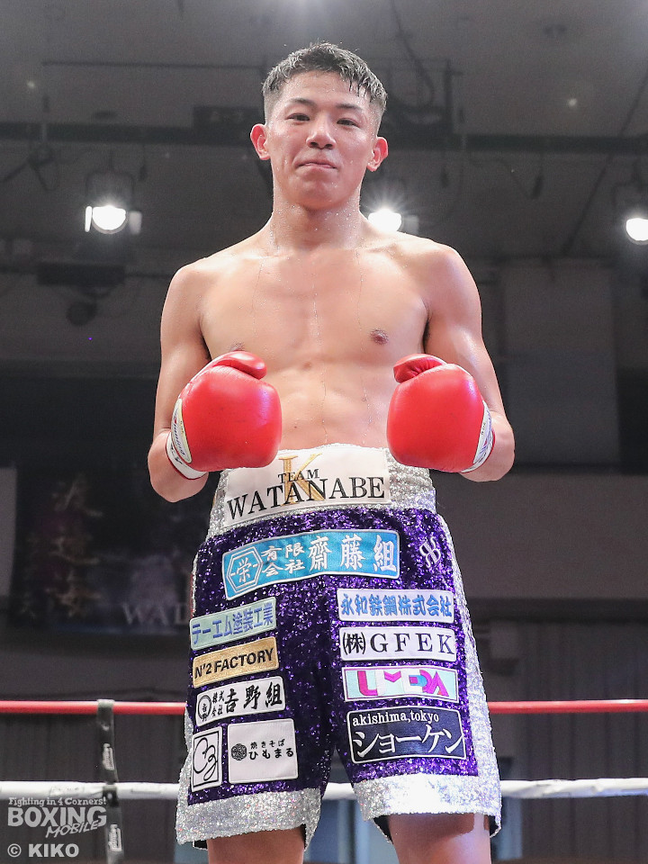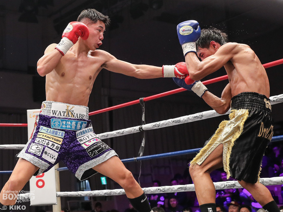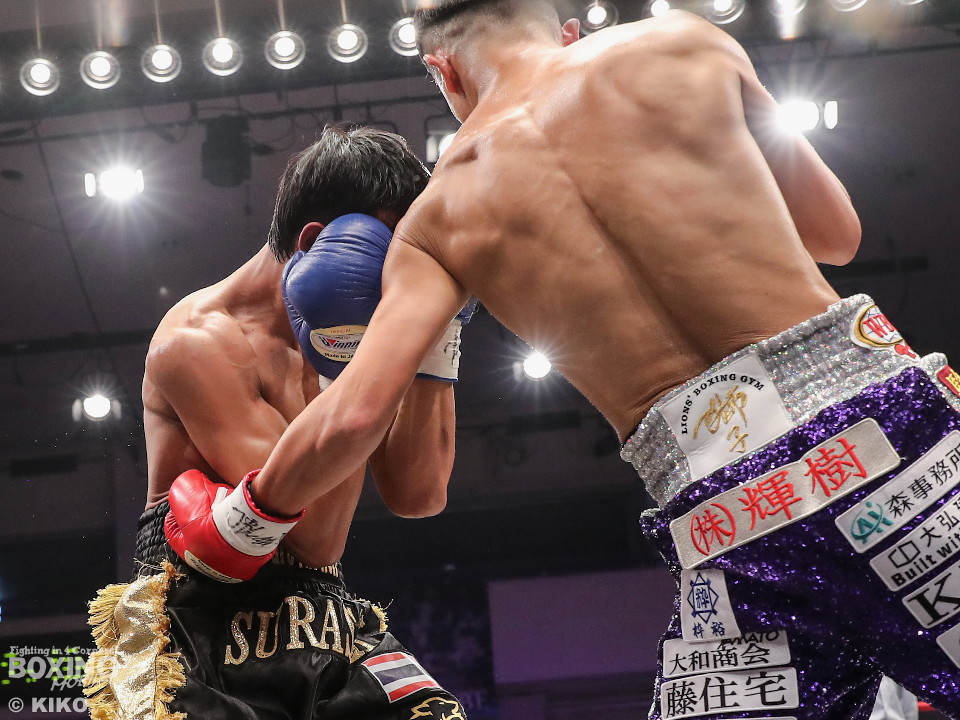試合:前WBOアジアパシフィック・スーパーフェザー級王者の渡邊の再起戦。初回、渡邊はシャープなジャブを飛ばして丁寧な組み立て。右をほとんど出さず距離とタイミングを図った。2回、渡邊は距離を詰めて左ボディを突き刺すと、攻め急がずジャブをヒット。3~4回、渡邊は緩急をつけながら左ボディを好打。被弾したスラサックだが強気に打ち返した。5回、渡邊は左アッパーから左ボディを突き刺し攻勢。スラサックはそろそろ苦しくなってきたか。7回、渡邊はジャブを上下に散らすと左ボディ、左右アッパーで攻め立てた。8回、渡邊はこれでもかと左ボディを突き刺すとロープに詰めて連打で攻勢。右アッパーで倒すとレフェリーはノーカウントでストップした。渡邊が来年2月のスーパーフェザー級1000万円トーナメント初戦に向けて弾みをつけた。