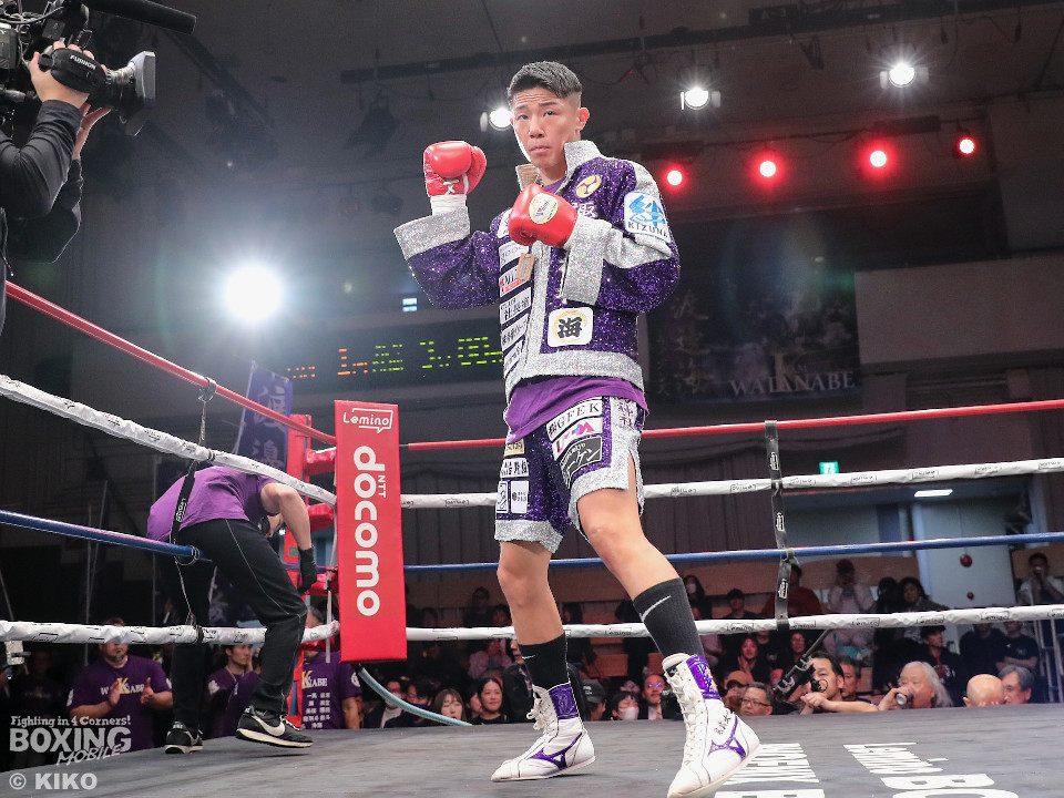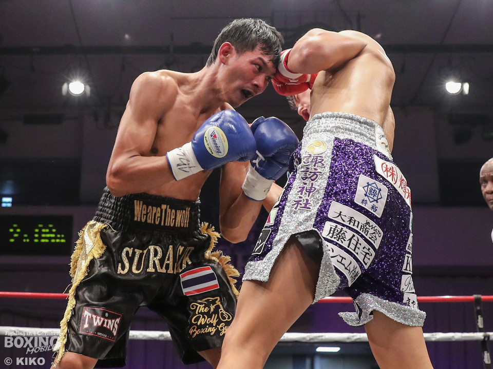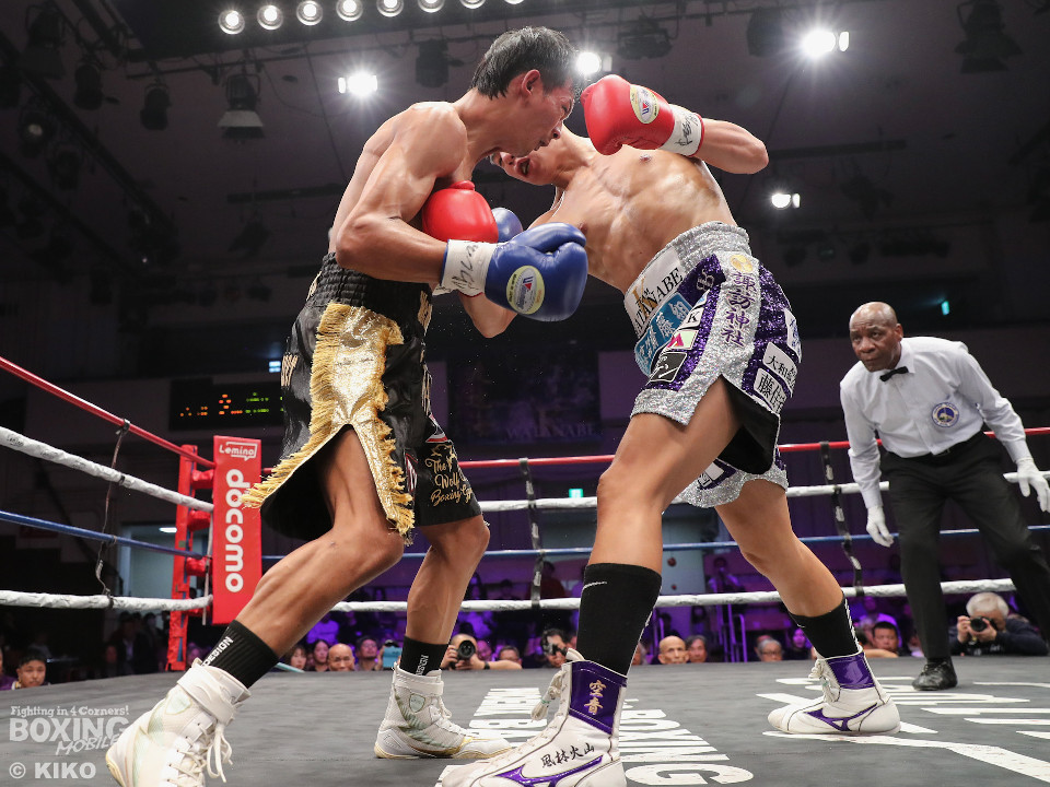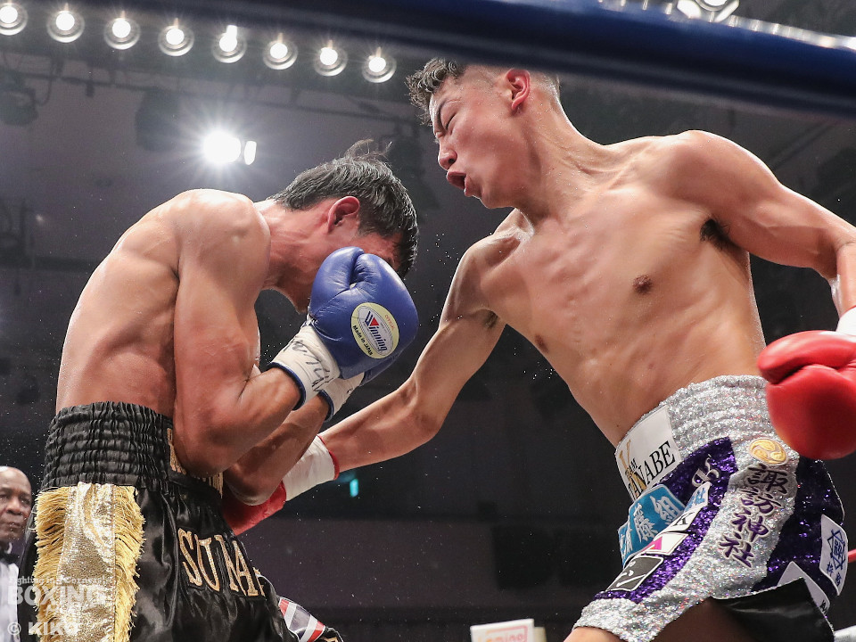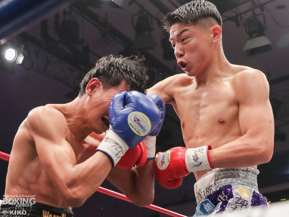 試合:前WBOアジアパシフィック・スーパーフェザー級王者の渡邊の再起戦。初回、渡邊はシャープなジャブを飛ばして丁寧な組み立て。右をほとんど出さず距離とタイミングを図った。2回、渡邊は距離を詰めて左ボディを突き刺すと、攻め急がずジャブをヒット。3~4回、渡邊は緩急をつけながら左ボディを好打。被弾したスラサックだが強気に打ち返した。5回、渡邊は左アッパーから左ボディを突き刺し攻勢。スラサックはそろそろ苦しくなってきたか。7回、渡邊はジャブを上下に散らすと左ボディ、左右アッパーで攻め立てた。8回、渡邊はこれでもかと左ボディを突き刺すとロープに詰めて連打で攻勢。右アッパーで倒すとレフェリーはノーカウントでストップした。渡邊が来年2月のスーパーフェザー級1000万円トーナメント初戦に向けて弾みをつけた。