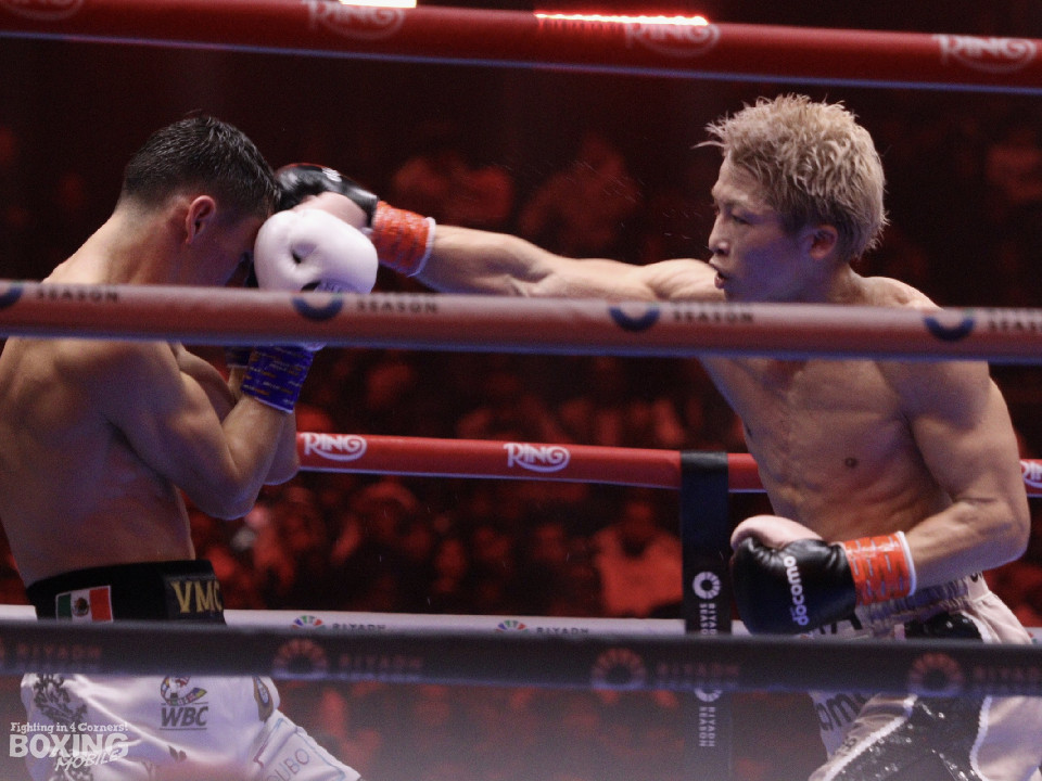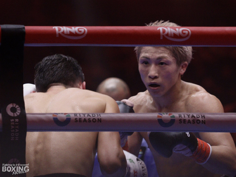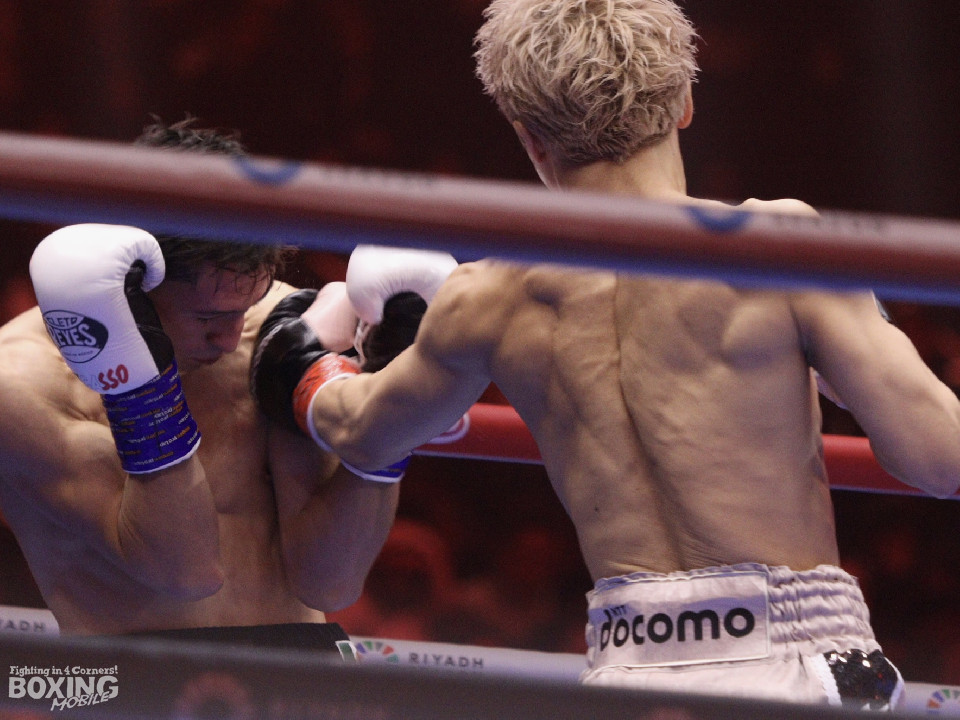 試合:世界スーパーバンタム級4団体統一王者の井上がついにリヤドのリングに上がった。花火が上がる中、ゲートからモンスターが入場すると地鳴りのような歓声が沸き起こった。初回、ガッチリとガードを固めながら距離を詰めるピカソに対し、井上は足を使いながら槍のようなジャブを突き様子を伺う。2回、井上は相手の右をスウェーでなんなくかわすと強烈な右フック、左ボディを好打。3回、井上はピカソのパンチの軌道を読み切ると上下に打ち分け攻勢。4回、井上はロープを背負いながらも冷静に対応。相手のガードを削っていった。5回も井上のラウンド。左ボディを突き刺すジワリジワリと攻め立てた。6回、井上は右アッパーから左ボディを痛打。被弾したピカソは必死に打ち返したが守勢を強いられた。7回も井上はジャブを軸に攻勢を続けた。9回、突破口を開きたいピカソだがコンビネーションを見切られ、なす術なし。10回、井上は前後を意識しながら左ボディを好打。しかし、ピカソは我慢強く倒れることを拒否。11回、至近距離での打ち合いとなるが、ここでも井上が優勢。12回、激しいパンチの応酬、お互いの気持ちがぶつかり合う熱戦に会場は盛り上がりを見せた。力の差を見せつけた井上が大差判定勝ちで王座防衛に成功した。