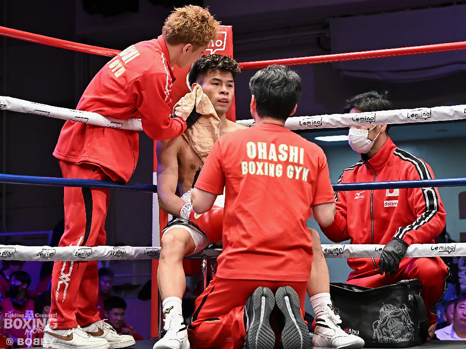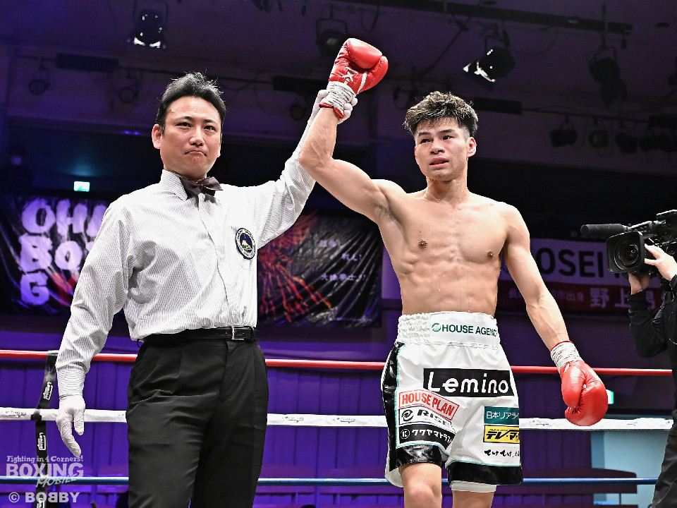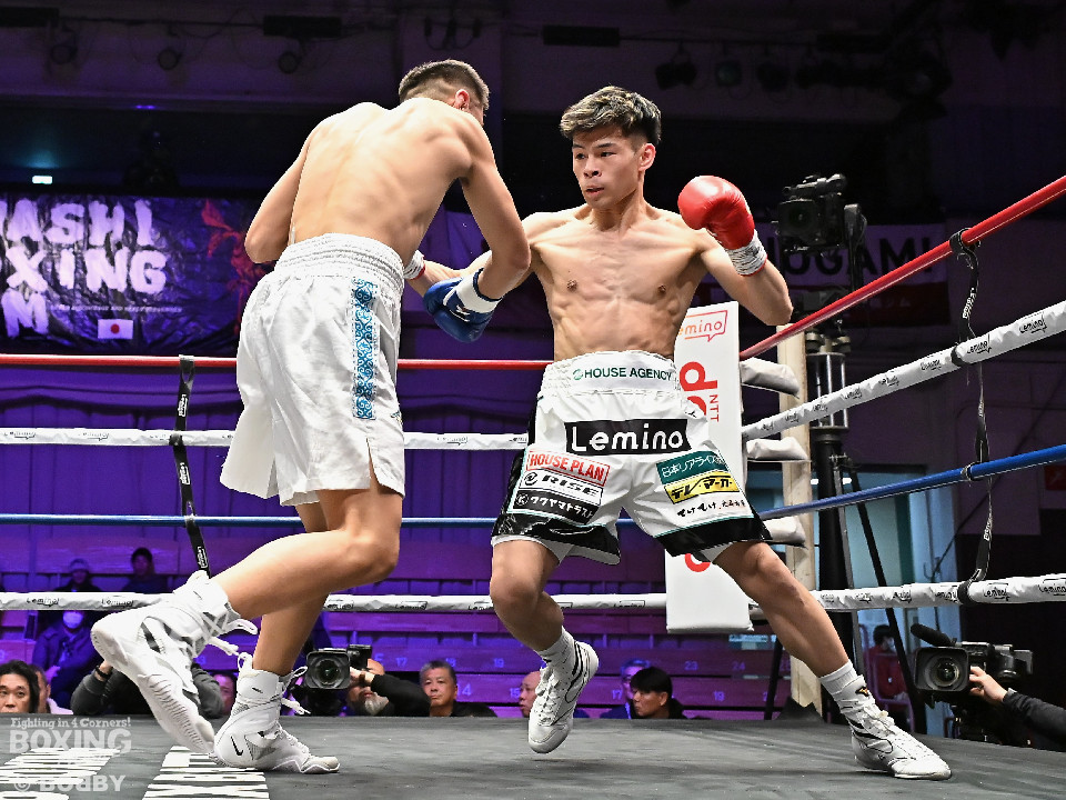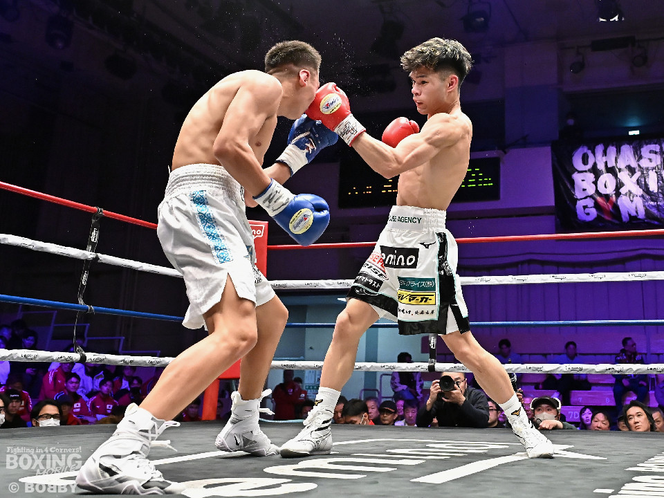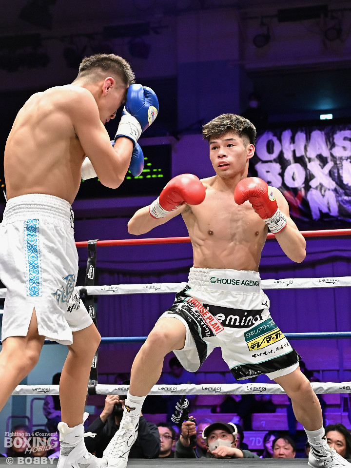 試合:日本フェザー級15位の大橋が5戦目のリングに上がった。トウハタセンが独特のリズムで先制攻撃。しかし、サウスポー大橋は慌てる素振りを見せず左アッパーを合わせるとサイドに切って対応。2回、偶然のバッティングで左目を負傷した大橋に対し、レフェリーは1分間の休憩を与えた。相手のリズムに手を焼いた大橋だが、打ち下ろしの左ストレートを好打。3回、大橋は左ボディアッパー、右ボディで体力を削る作戦。4回、大橋は右フックを引っかけると左カウンターをジャストミート!前のめりに倒れたトウハタセンを見てレフェリーはノーカウントでストップした。大橋がデビューから5戦全勝(5KO)とした。