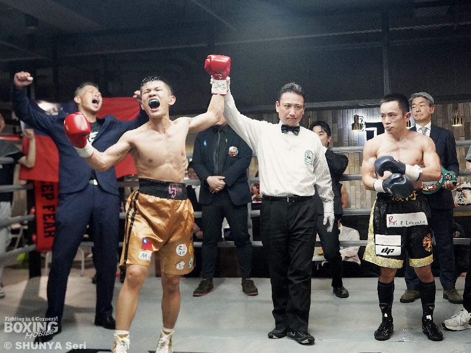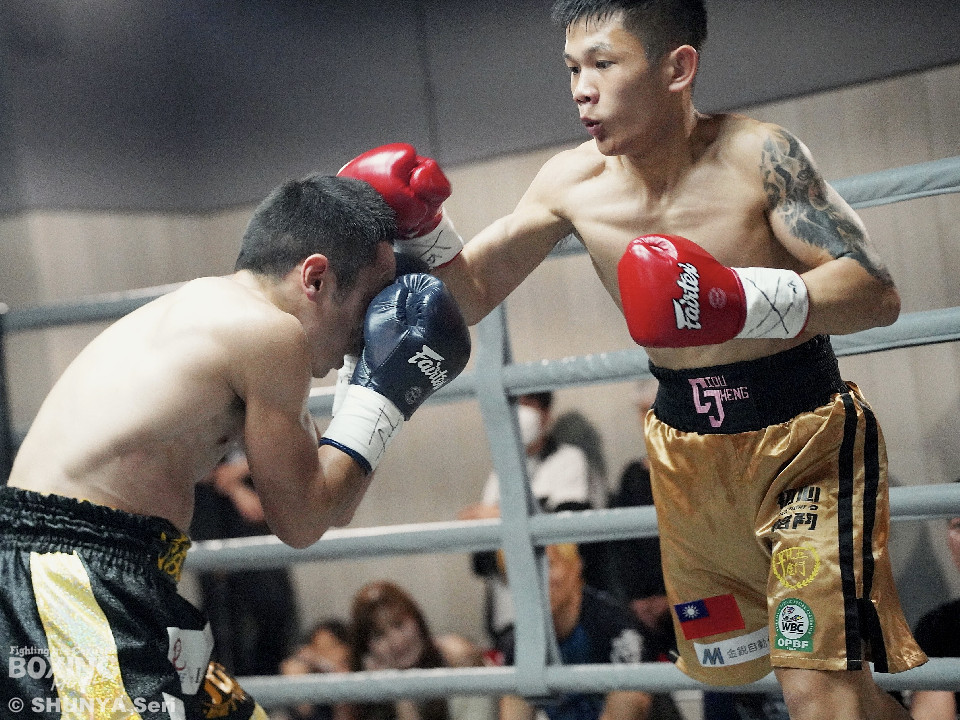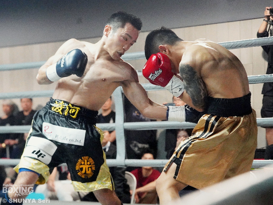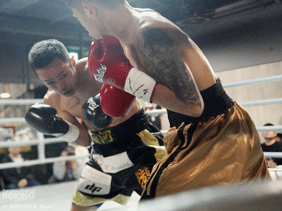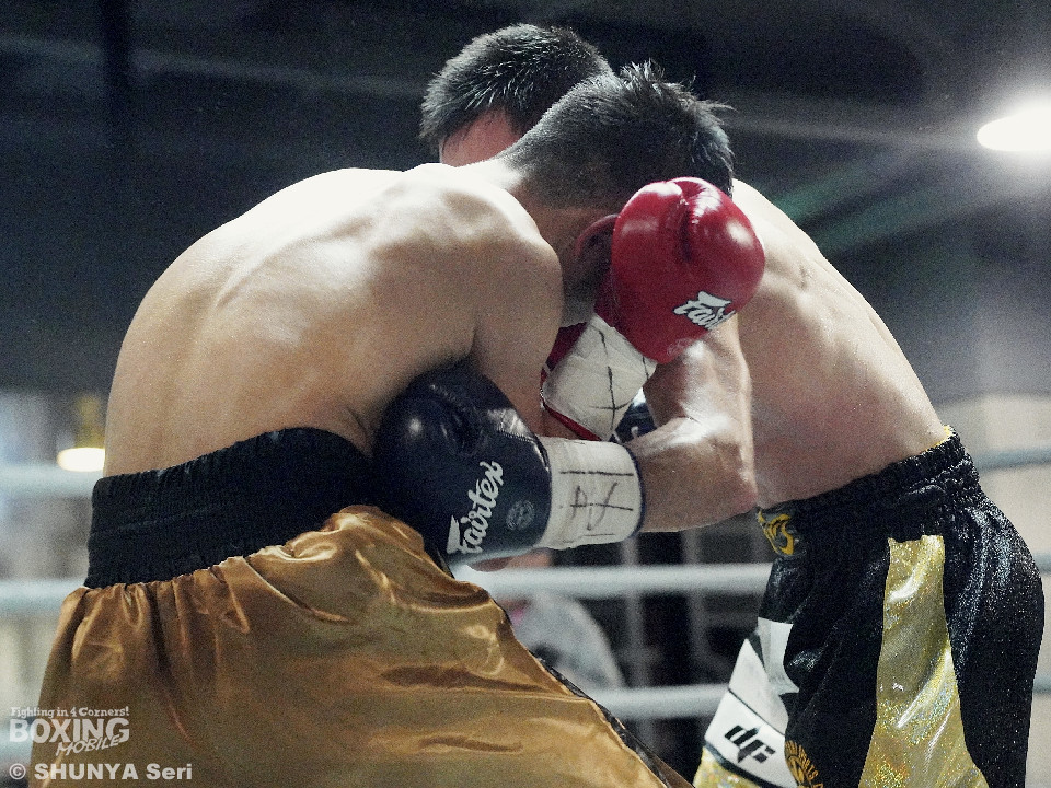 試合:ホームリングの大歓声を一身に浴びたのはジェンだったが、服部にも日本から駆けつけた応援団に加え、前座で勝利した宮川の陣営が合流し、場内は応援合戦に包まれた。試合前から服部が最大の警戒を口にしていたのは、ジェンが変幻自在に繰り出すアッパー。これは序盤から服部の顔面を跳ね上げる。服部はこれを想定内とばかりに表情を崩さず、前進を止めない。スタミナを削る後半勝負へと流れを引き寄せようとした。しかしジェンも試合後、「想定していた展開だった」と振り返った通り、明確な動揺を見せることはない。中盤以降、ジェンの足も鈍りかけたが、服部もまた消耗を隠せない。結局、流れを掌握し続けたジェンが、シルバー王座を獲得した。