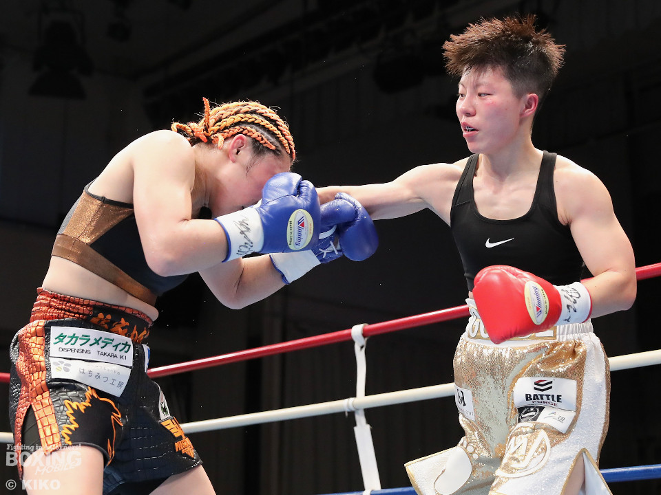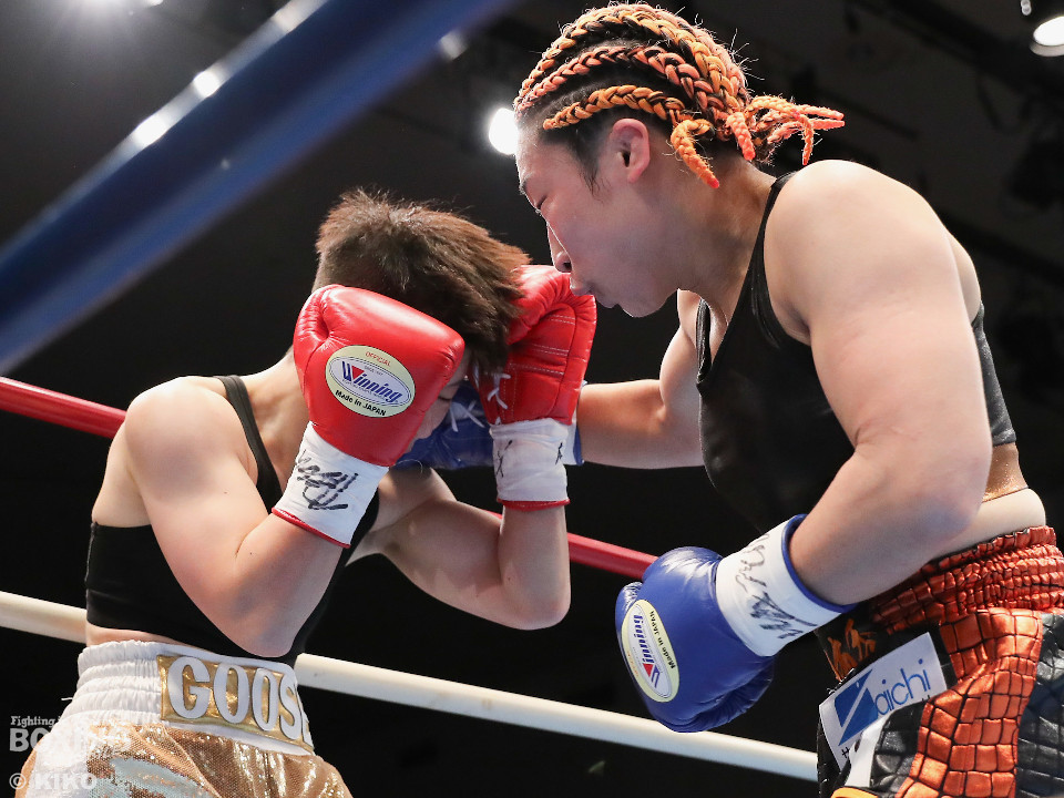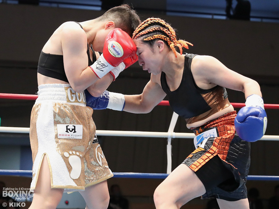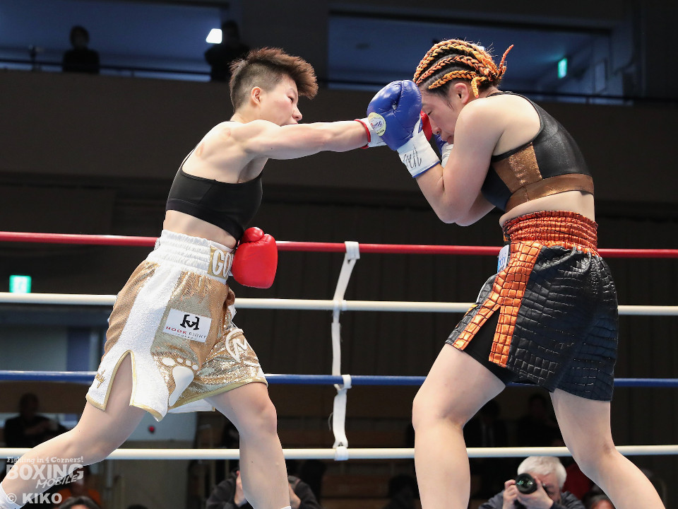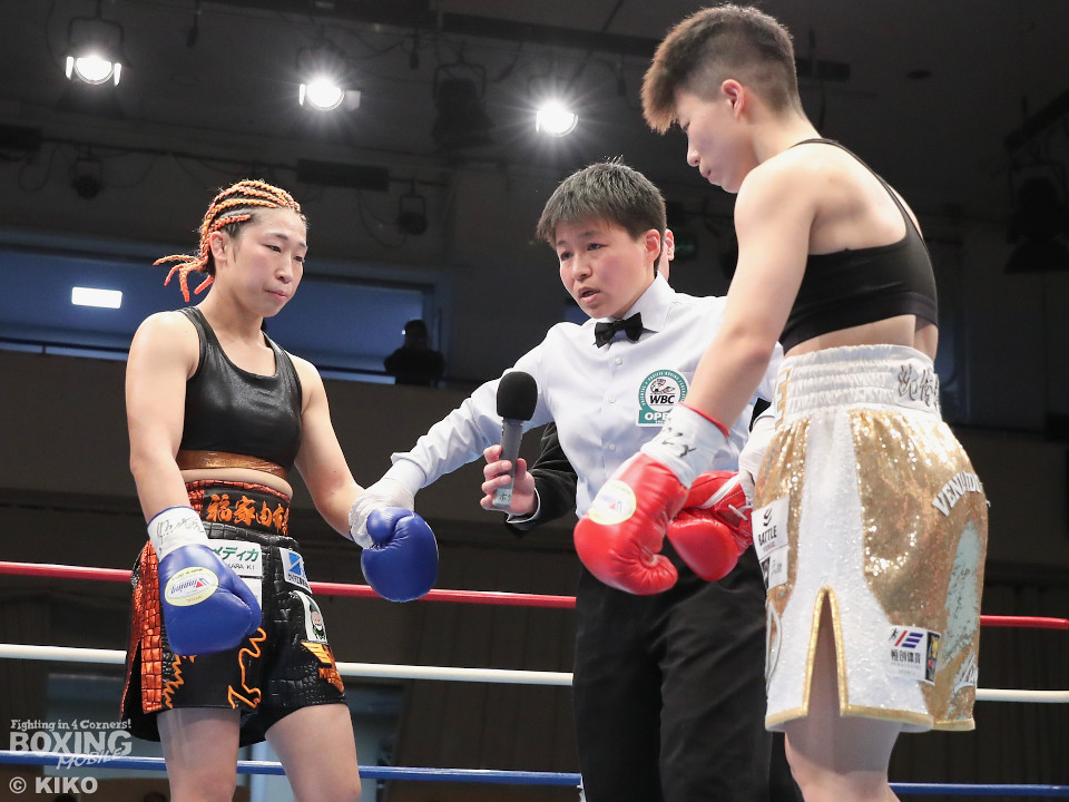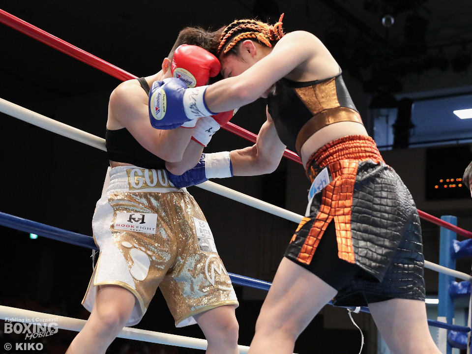 試合:OPBF東洋太平洋女子スーパーフライ級王座決定戦。初回、福家が上下に揺さぶりをかけながら左ボディを好打し先制。2回、福家は距離を潰してボディにパンチを集めて積極的な攻撃。3回、右ストレートで突き放したいワンだが、相手の圧力を止められず。福家はしつこくボディを叩き優勢をアピール。続く回も福家は攻撃の手を緩めず、ワンは厳しい状況。前半終了時の公開採点は、39ー37×1、40-36×2で福家がリード。勝負が決まったのは5回、福家はロープに詰めて連打で攻勢。ワンツーで顔を弾いたところでレフェリーが割って入った。福家が2度目の挑戦で新王者に輝いた。