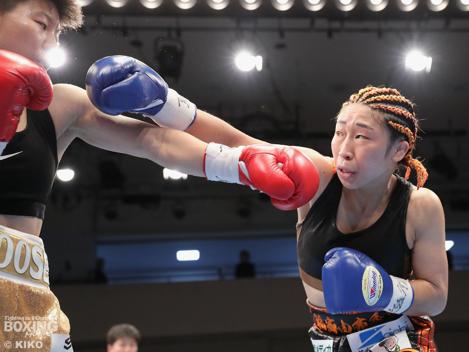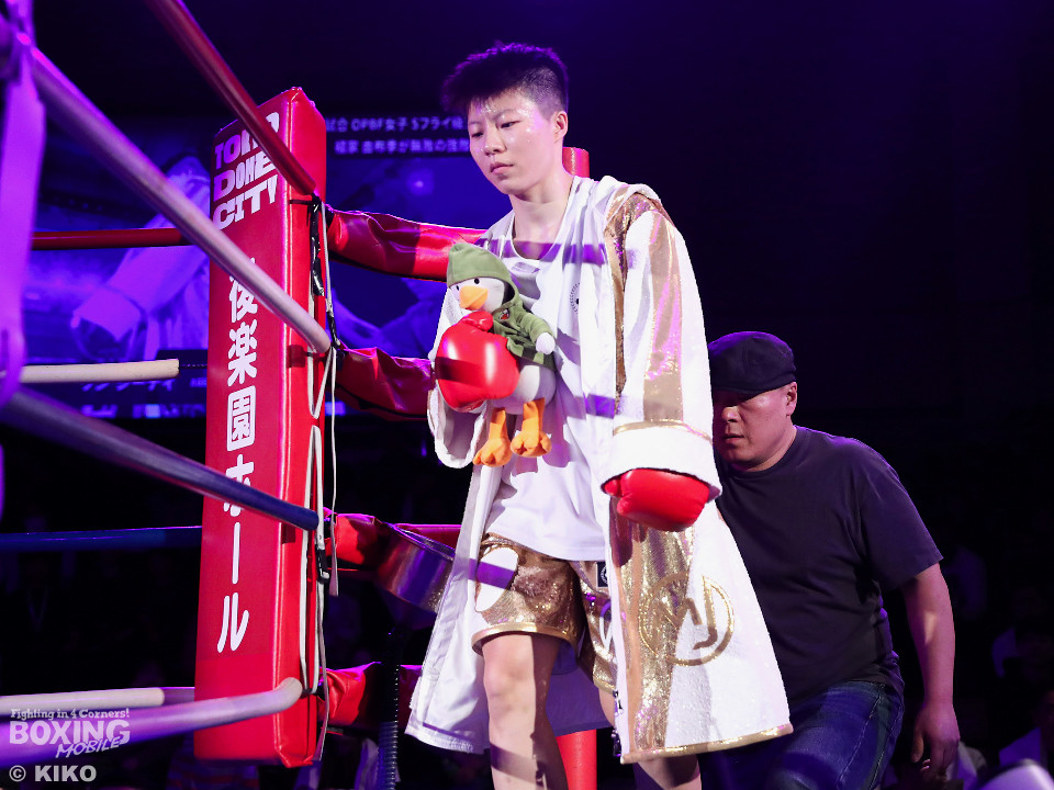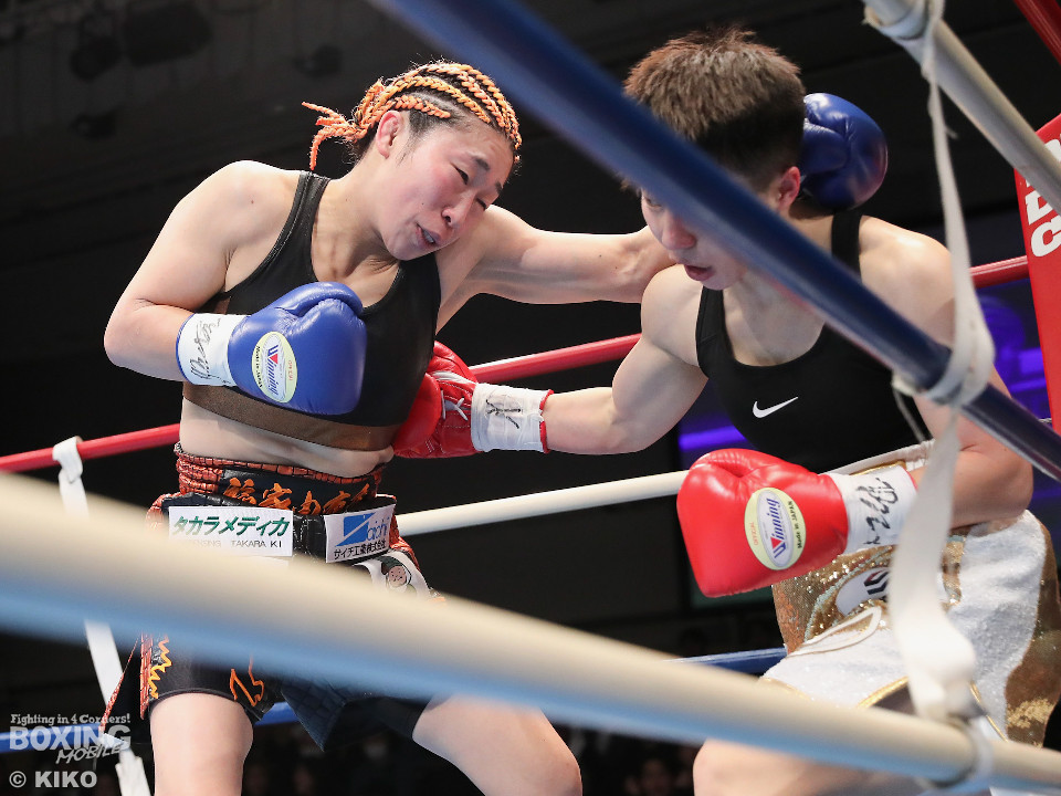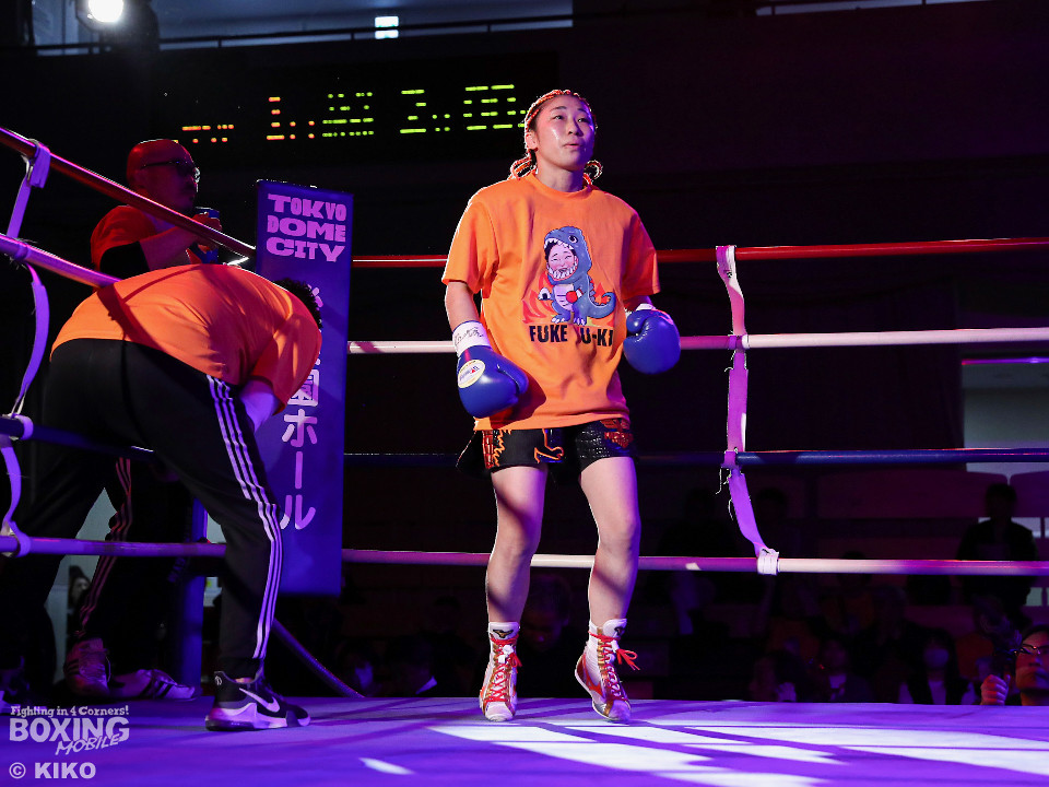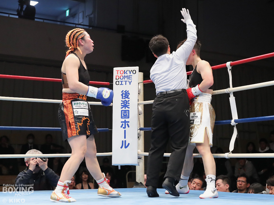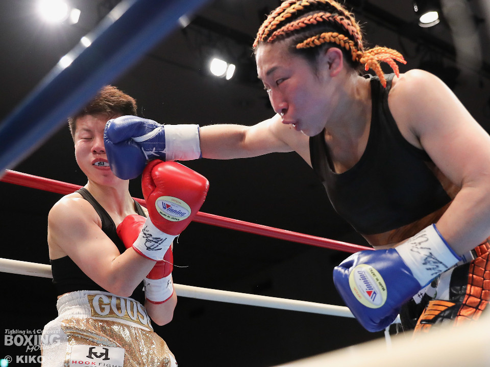 試合:OPBF東洋太平洋女子スーパーフライ級王座決定戦。初回、福家が上下に揺さぶりをかけながら左ボディを好打し先制。2回、福家は距離を潰してボディにパンチを集めて積極的な攻撃。3回、右ストレートで突き放したいワンだが、相手の圧力を止められず。福家はしつこくボディを叩き優勢をアピール。続く回も福家は攻撃の手を緩めず、ワンは厳しい状況。前半終了時の公開採点は、39ー37×1、40-36×2で福家がリード。勝負が決まったのは5回、福家はロープに詰めて連打で攻勢。ワンツーで顔を弾いたところでレフェリーが割って入った。福家が2度目の挑戦で新王者に輝いた。
