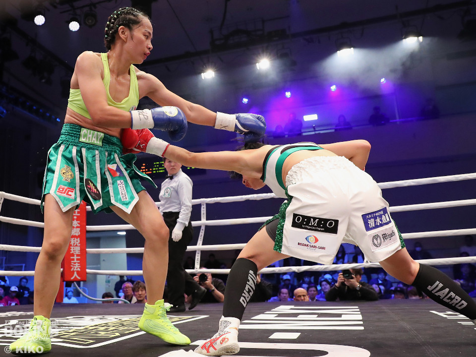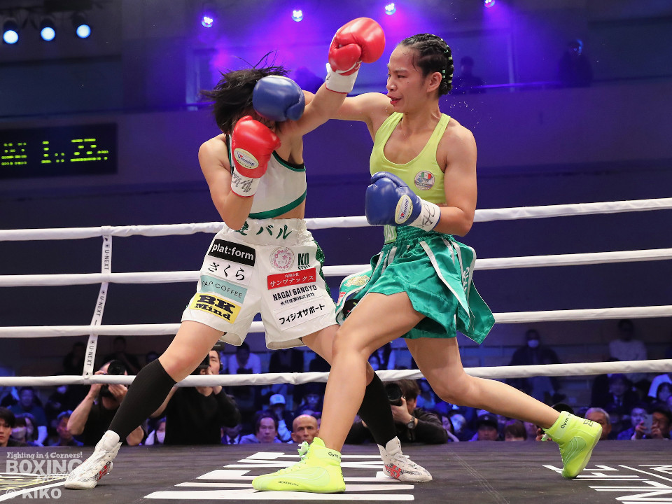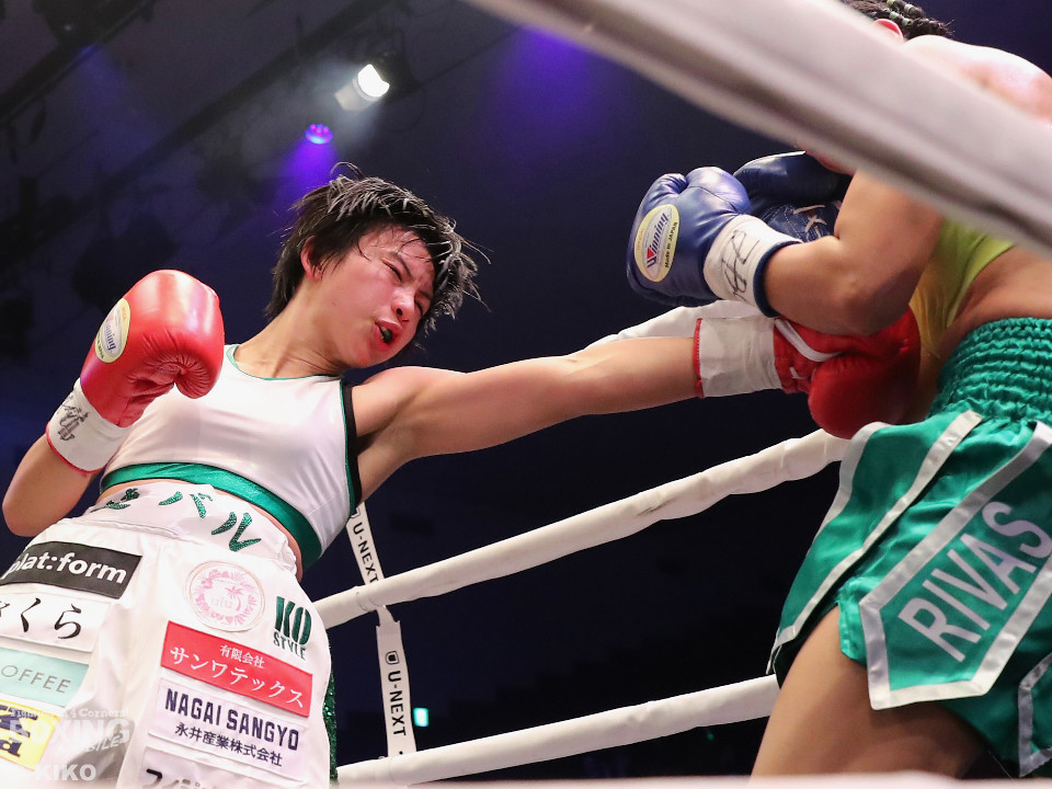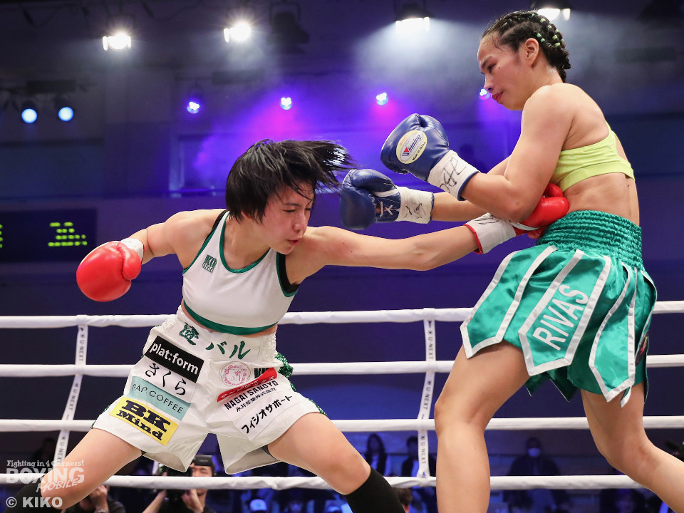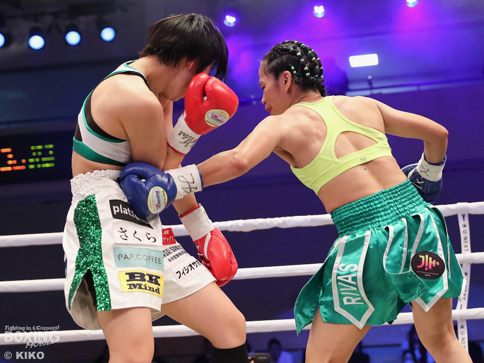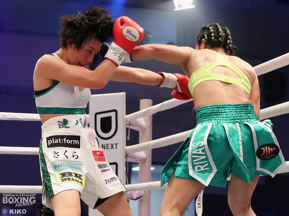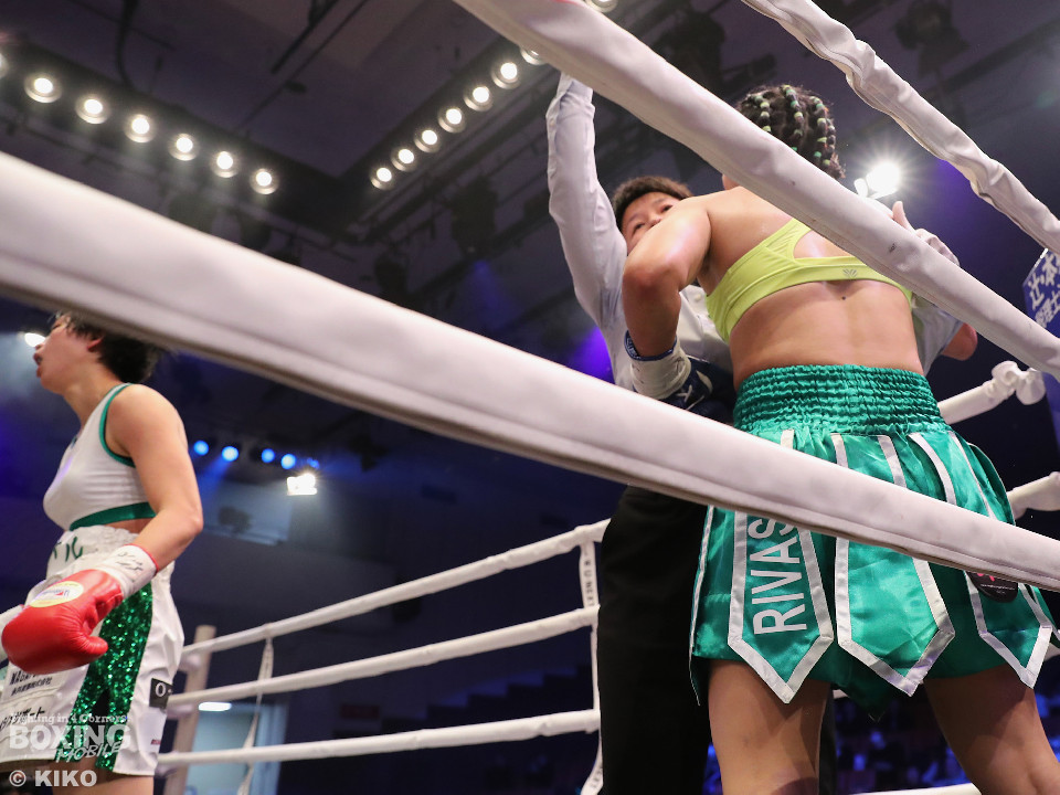 試合:漣(さざなみ)がジリジリと距離を詰めてワンツーで仕掛けるのに対し、リバスは変則的な左アッパーで対抗。2回、リバスは力強い右オーバーハンド、左フックを好打。3回、漣はブロックで決定打を回避するとボディジャブをヒット。4回、リバスは後ろ重心からワンツー、左アッパーをヒット。漣は被弾しながらもボディにパンチを集めて体力を削りにいった。前半終了時の公開採点は、38-38×1、39-37×2でリバスがリード。5回、漣はプッシュしながらボディ攻撃で流れを変えると左ボディを痛打。動きが止まったリバスを攻め立ててレフェリーストップに持ち込んだ。漣が逆転KO勝ちでOPBF東洋太平洋2階級制覇を成し遂げた。